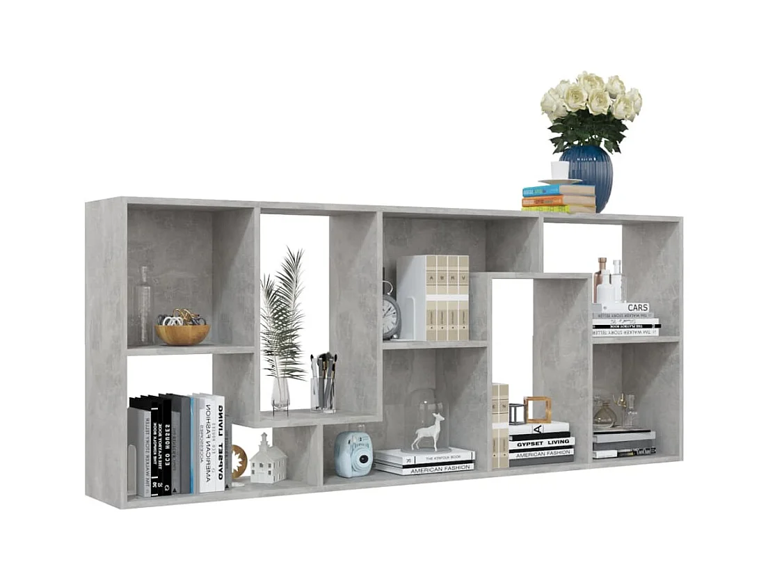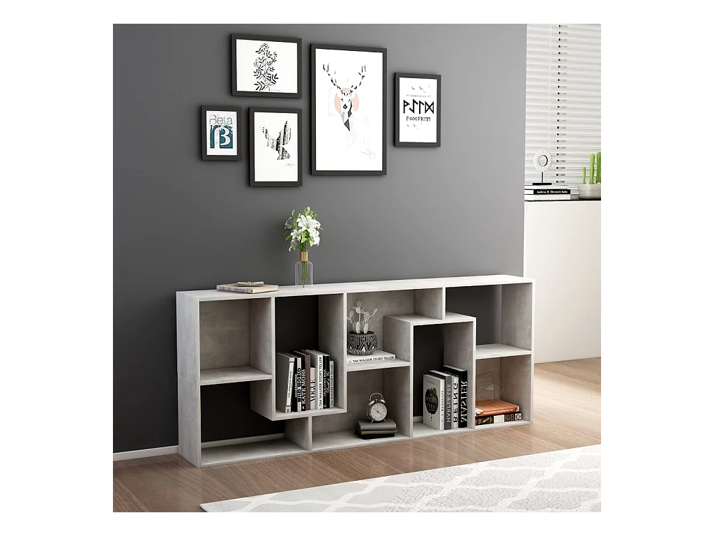 Bibliothèque séparatrice de pièce à 5 niveaux gris béton 70x24x161cm