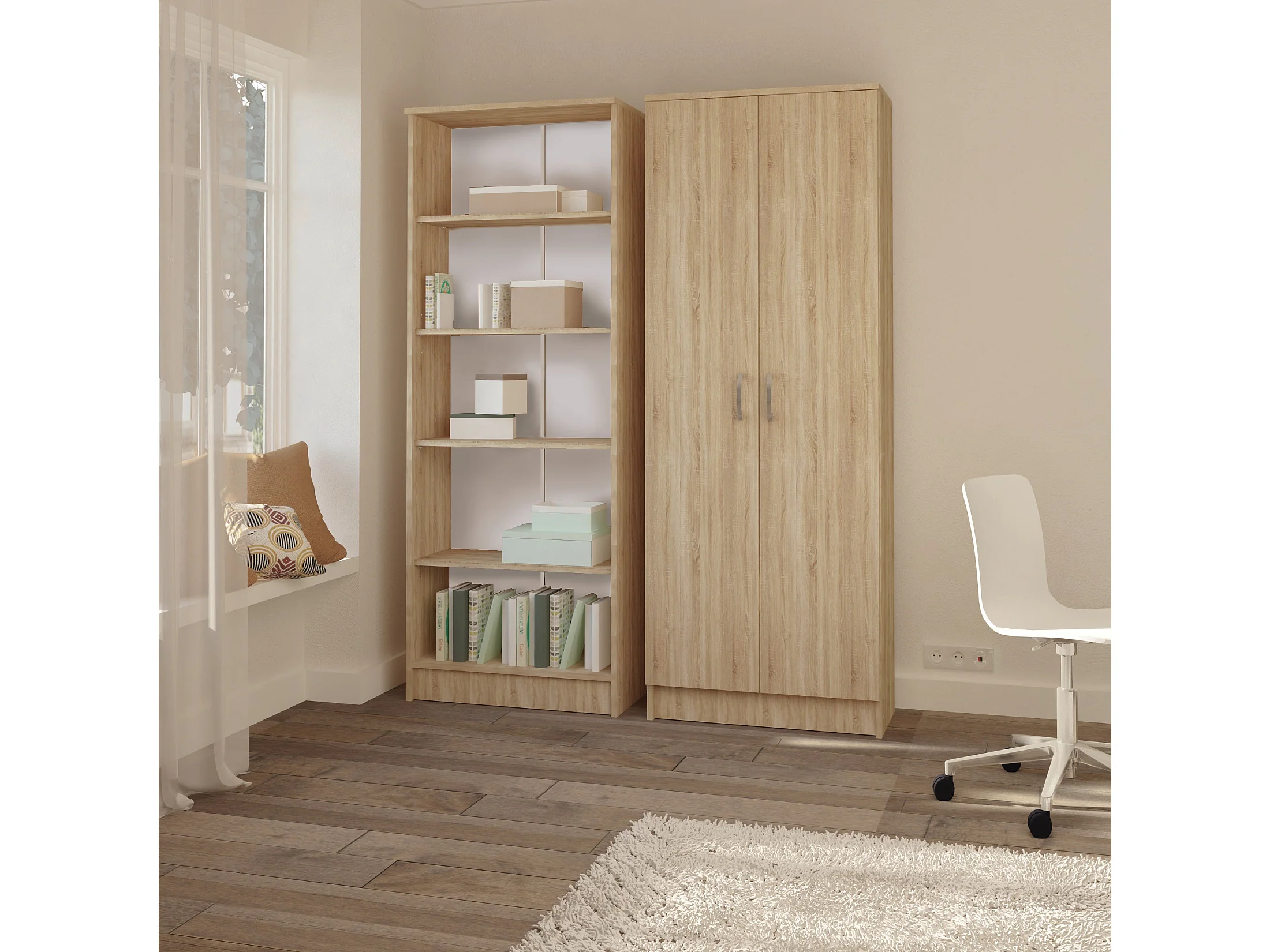 Bibliothèque haaus Flint, 4 étagères, Chêne Sonoma, 70 x 32 x 196 cm