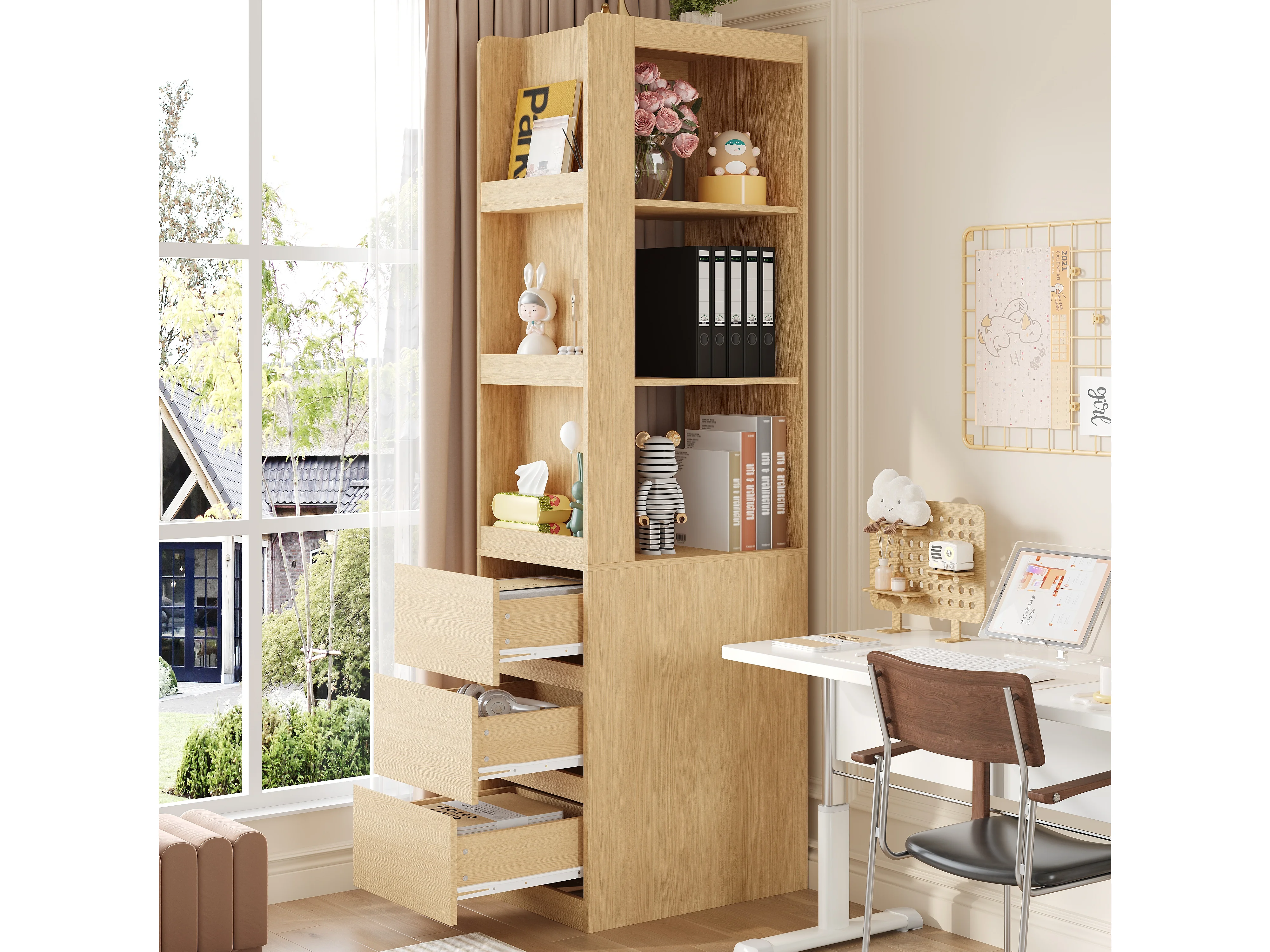 Bibliothèque haut de salon - 60 x 40 x 200 cm - avec 3 tiroirs + étagères - aggloméré - naturel