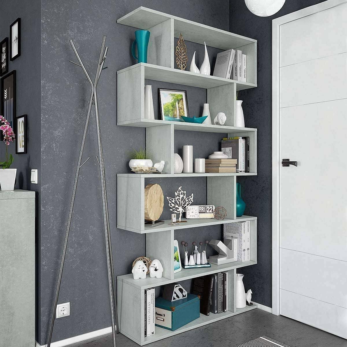 BIBLIOTHÉQUE - Bibliothèque haute double face, Etagère de sèparation avec 5 ètagères, Etagère de bureau moderne, 80x24h192 cm, Ciment.