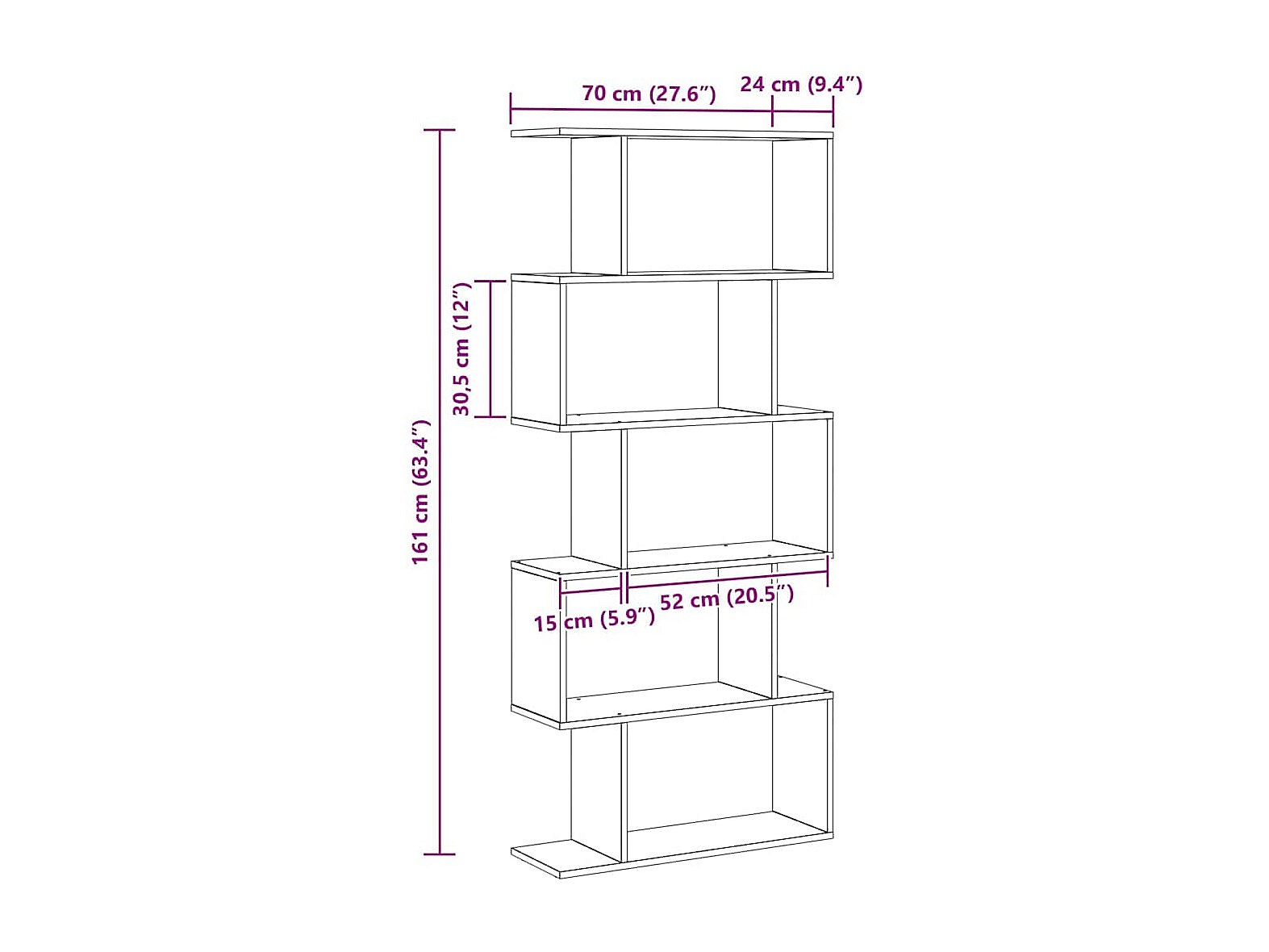 Bibliothèque séparatrice de pièce à 5 niveaux chêne fumé 70x24x161cm