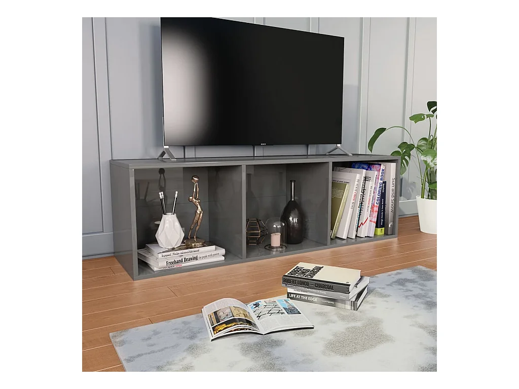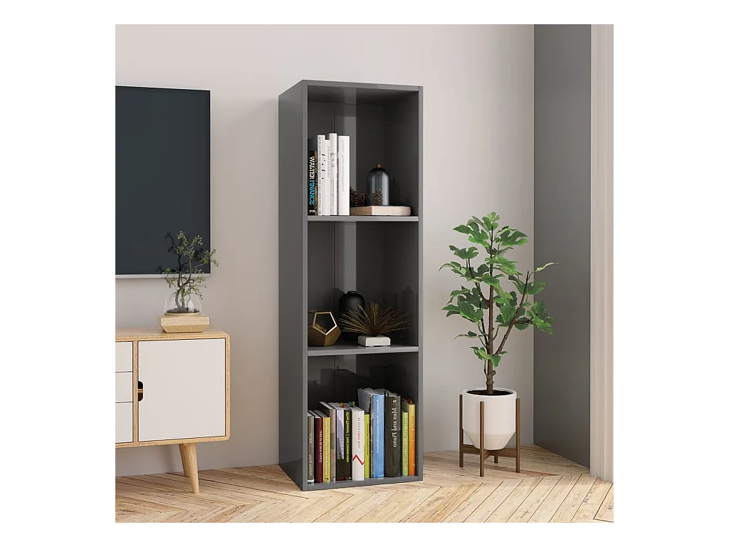Bibliothèque/Meuble TV Gris brillant Bois d’ingénierie