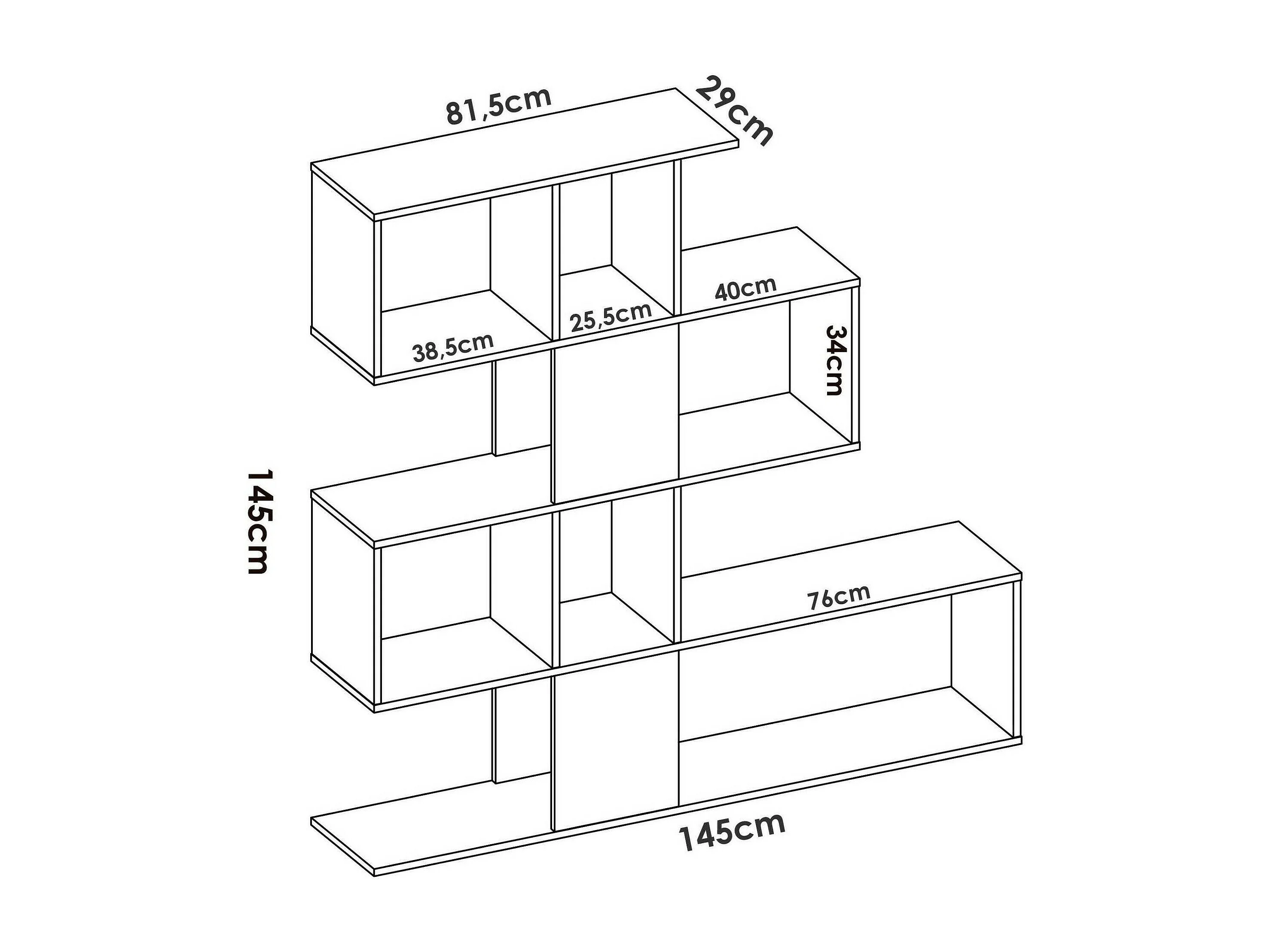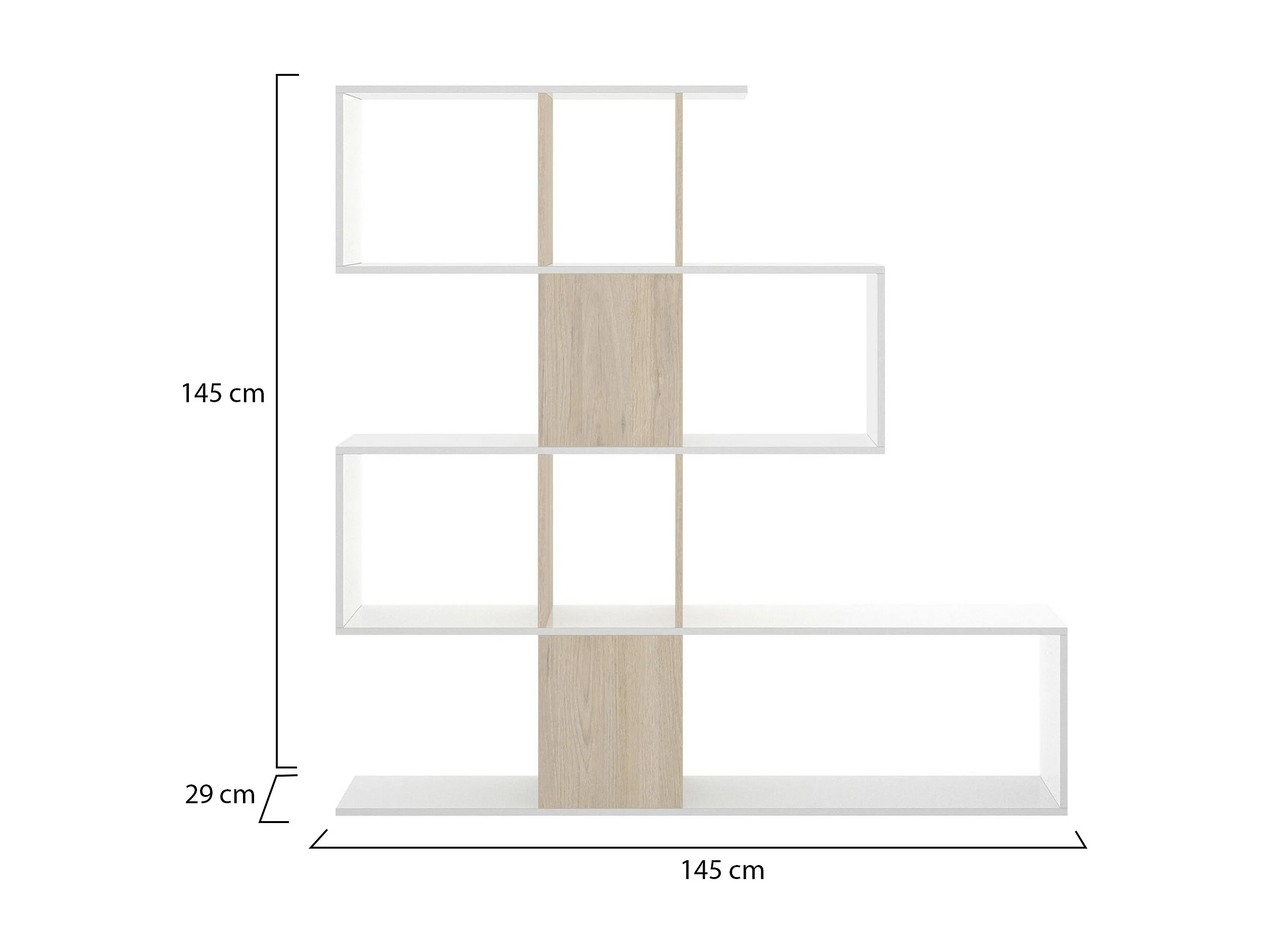Bibliothèque Moneglia, Etagère de bureau polyvalente, Bibliothèque avec 4 étagères, 145x29h145 cm, Blanc et Chêne