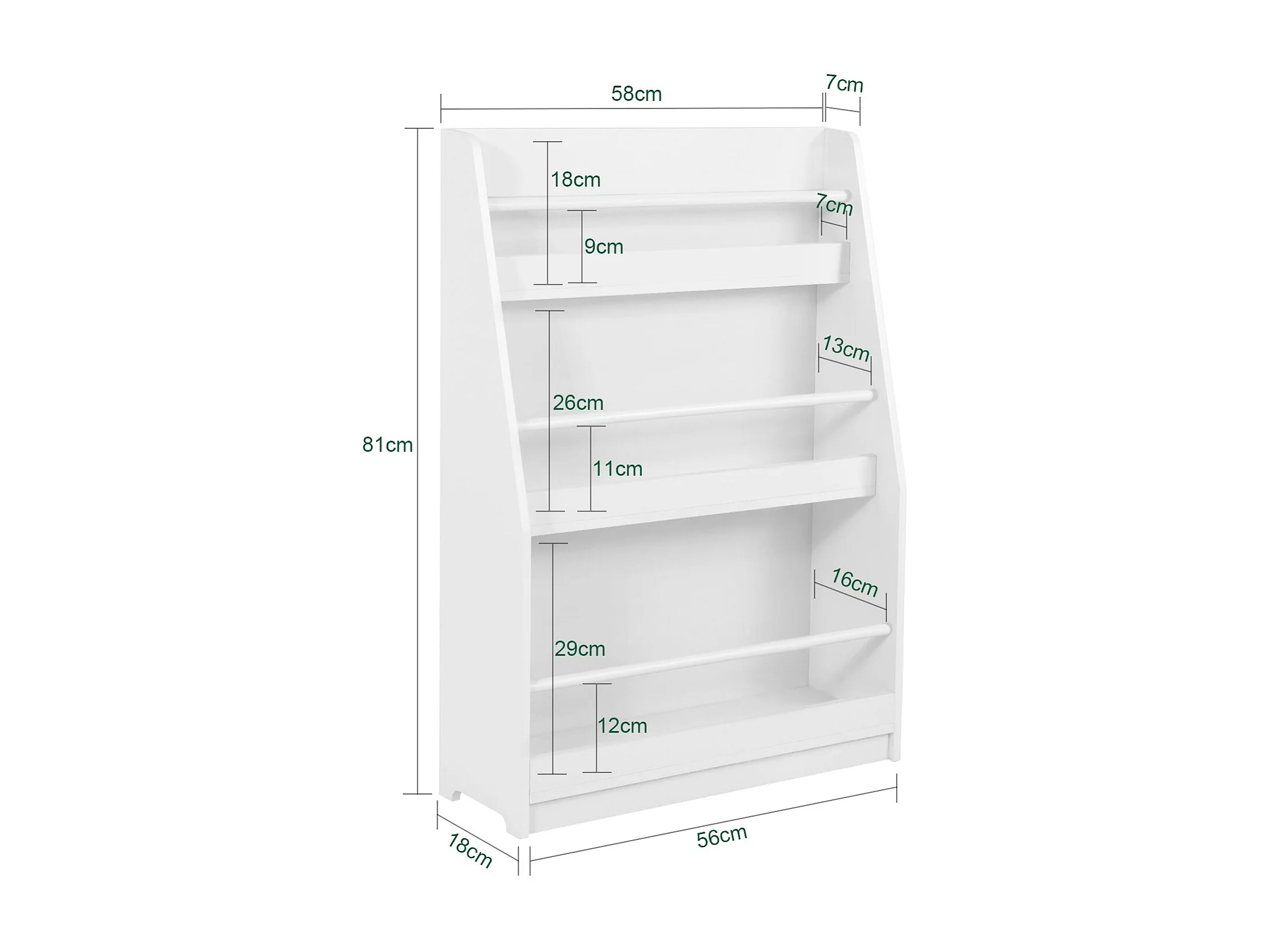 Bibliothèque Montessorienne pour Enfants, Étagère à Livres Étagères à 3 hauteurs, Blanc, KMB45-W