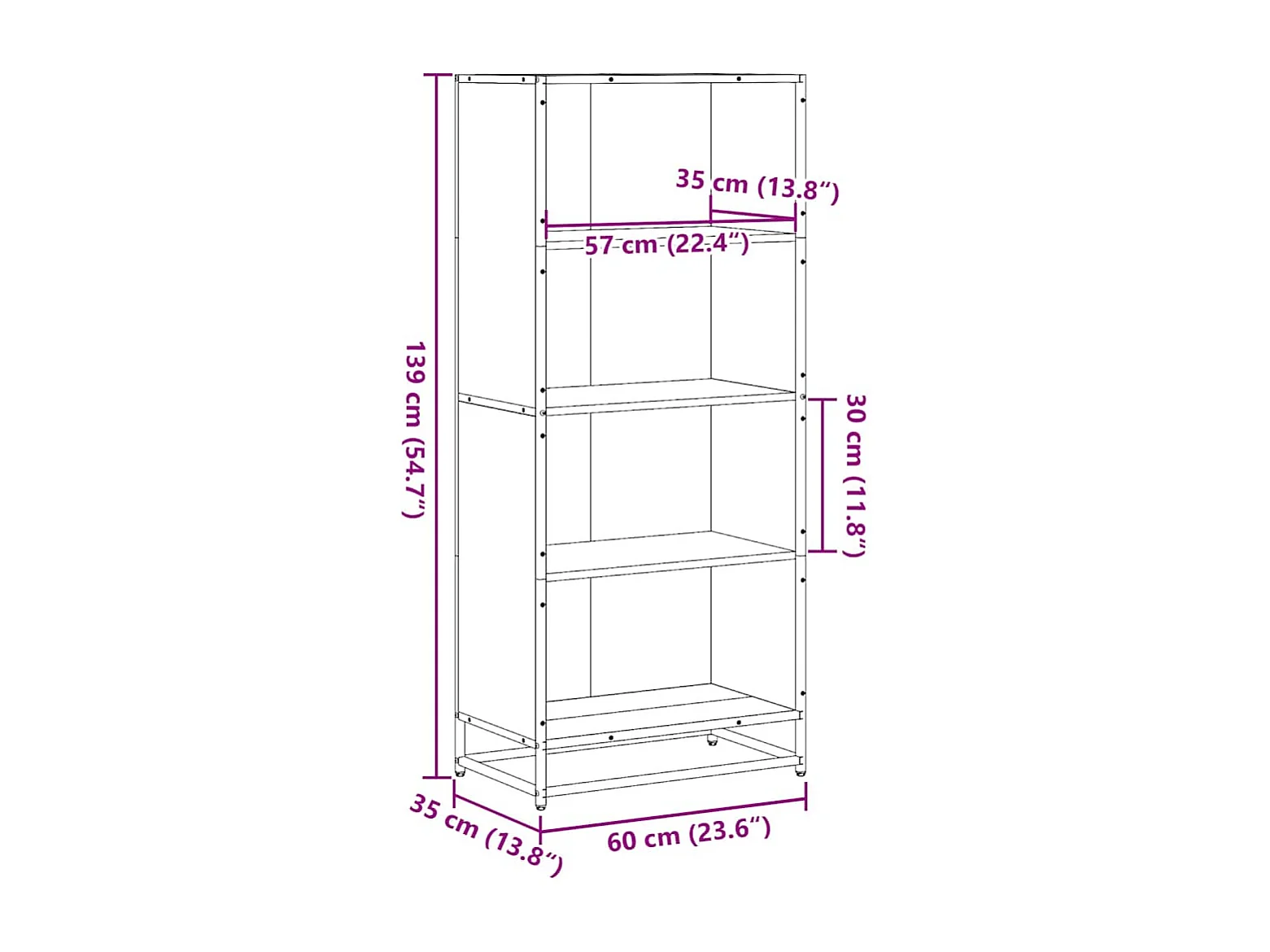 Bibliothèque noir 60x35x139 cm bois d'ingénierie