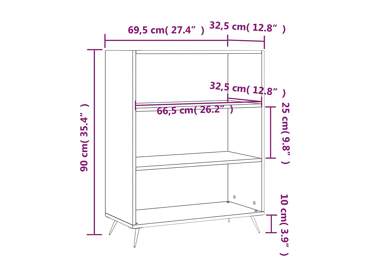 Bibliothèque noir 69,5x32,5x90 cm bois d'ingénierie