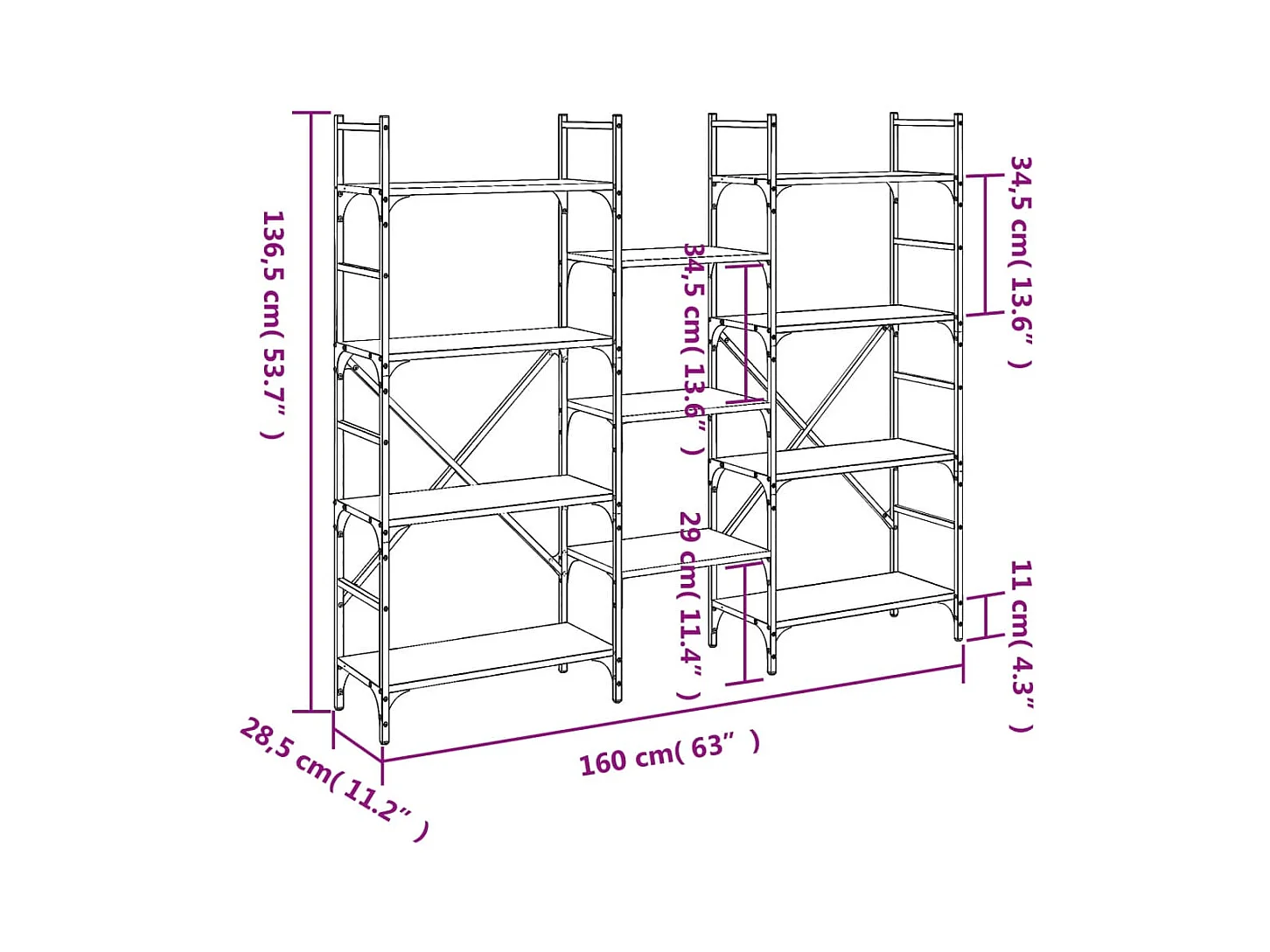Bibliothèque noir 72x28x109 cm bois d'ingénierie