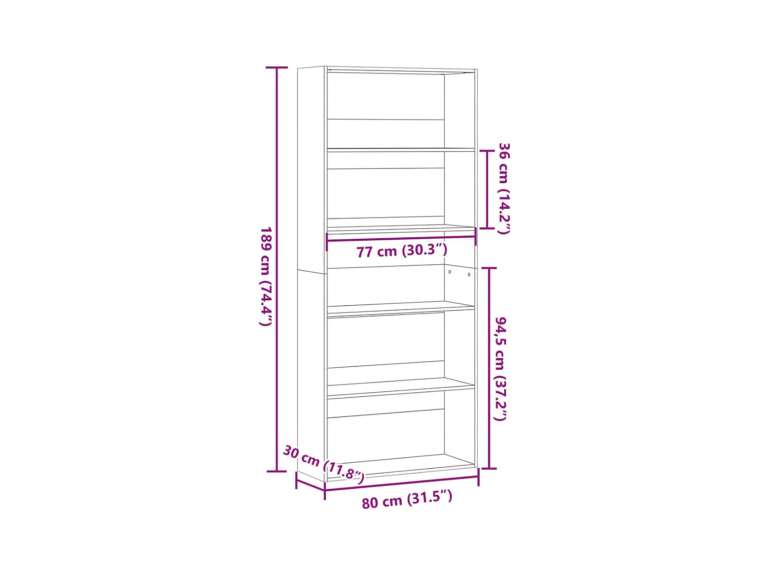 Bibliothèque noir 80x30x189 cm bois d'ingénierie