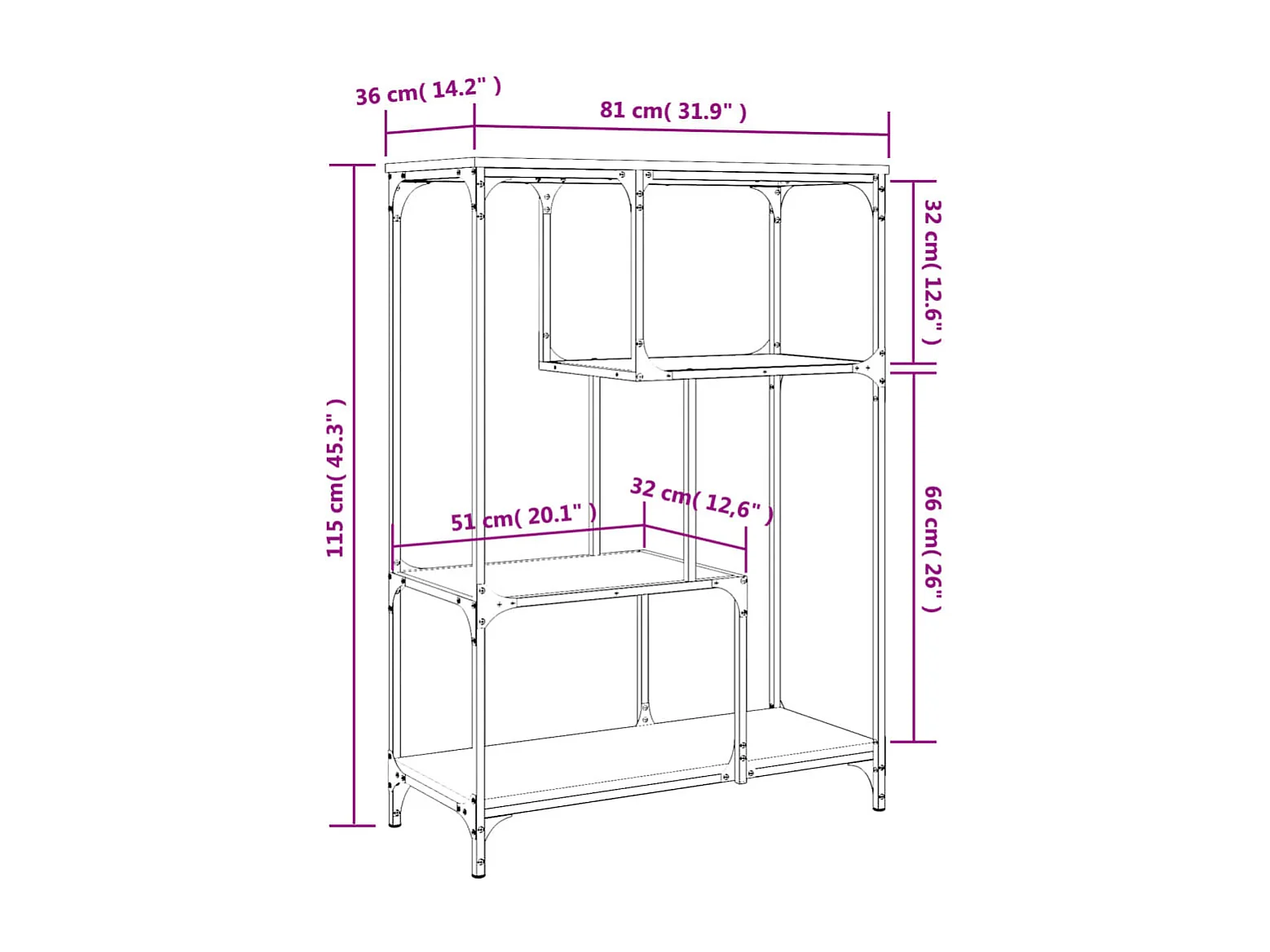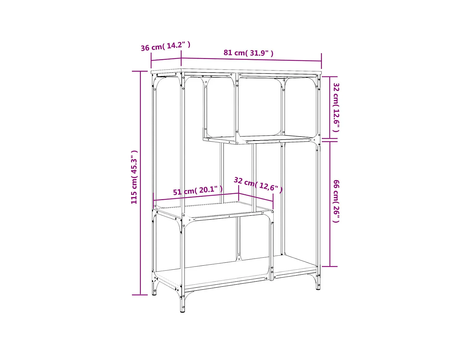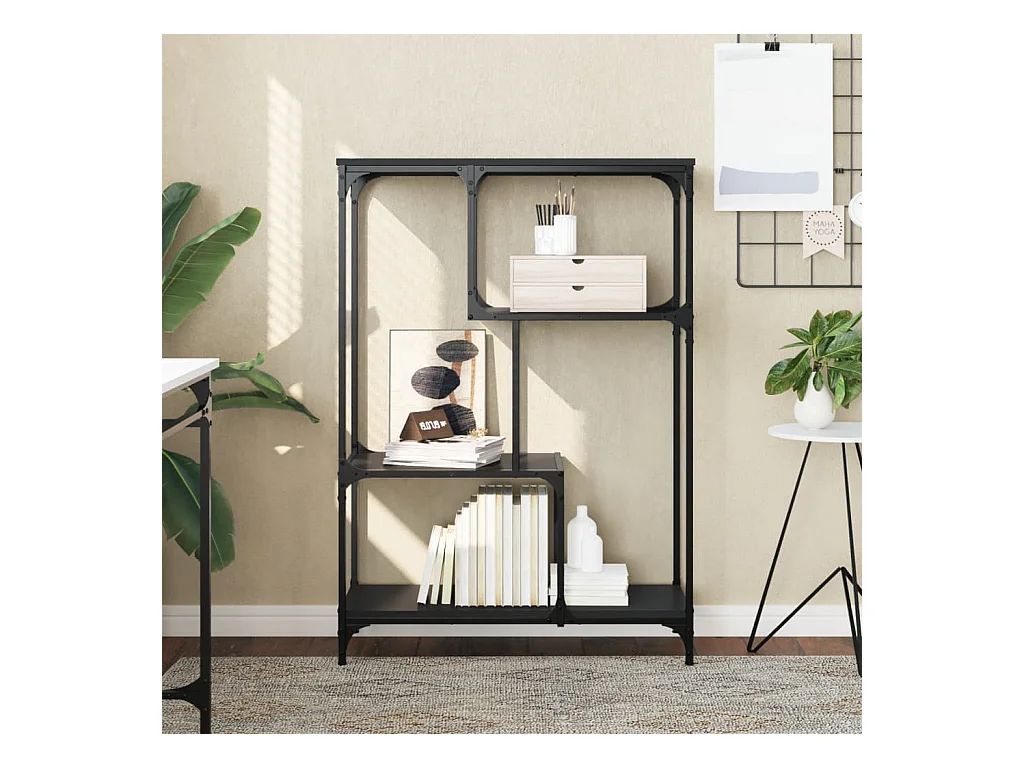 Bibliothèque noir 81x36x115 cm bois d'ingénierie et acier