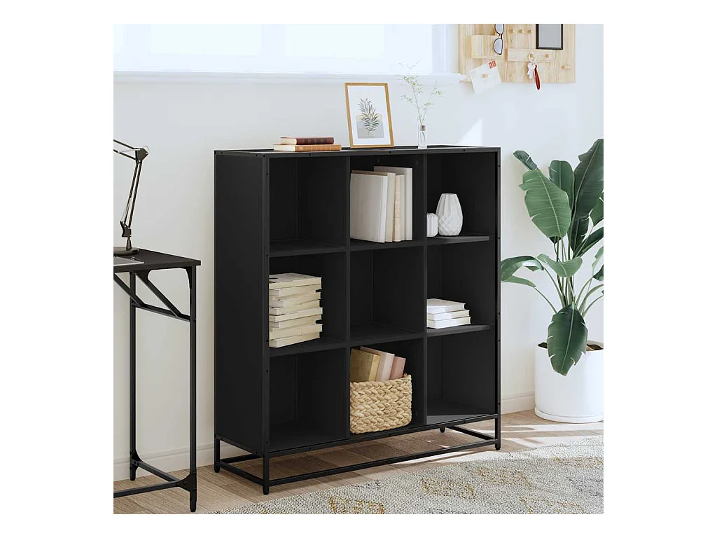 Bibliothèque noir 97,5x33x107,5 cm bois d'ingénierie et métal