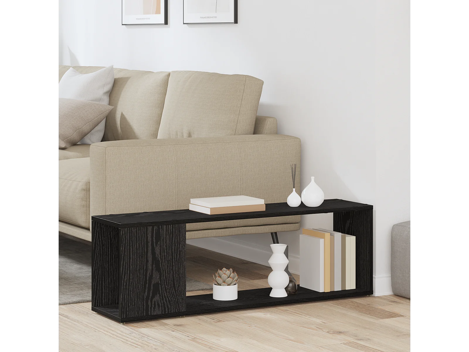 Meuble TV Noir Chêne 100x30x30 cm Bois d'ingénierie