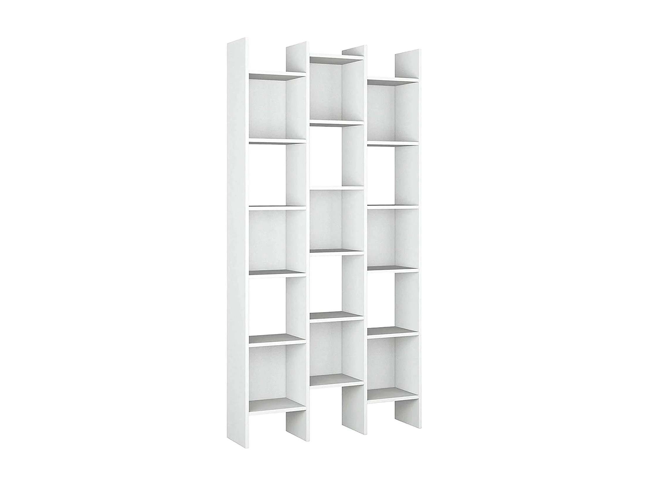 Bibliothèque Rockford, Bibliothèque avec 18 étagères, Étagère avec compartiments carrés, Étagère de bureau moderne, 96x29h192 cm, Blanc