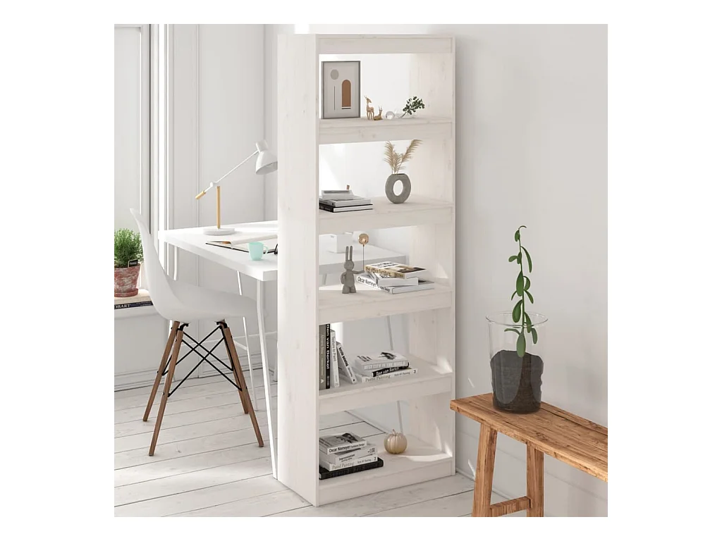 Bibliothèque/Séparateur de pièce Blanc 60x30x135,5cm Pin massif