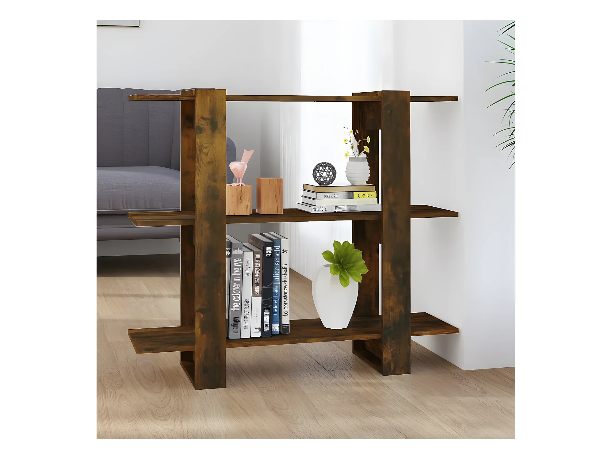 Bibliothèque/Séparateur de pièce Chêne fumé 100x30x87 cm