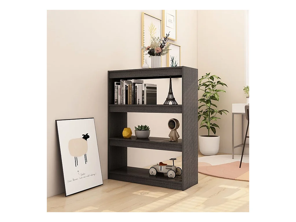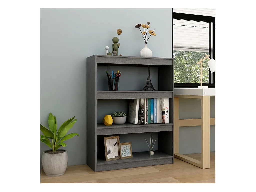 Bibliothèque-Séparateur de pièce Gris 100x30x103 Pin massif