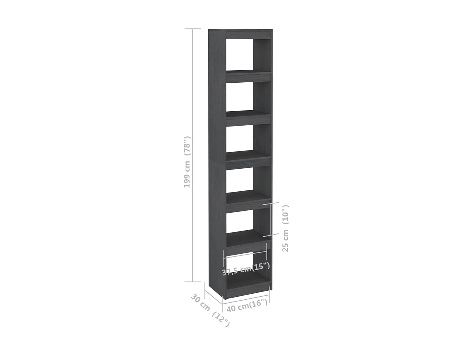 Bibliothèque-Séparateur de pièce Gris 40x30x199 Pin massif