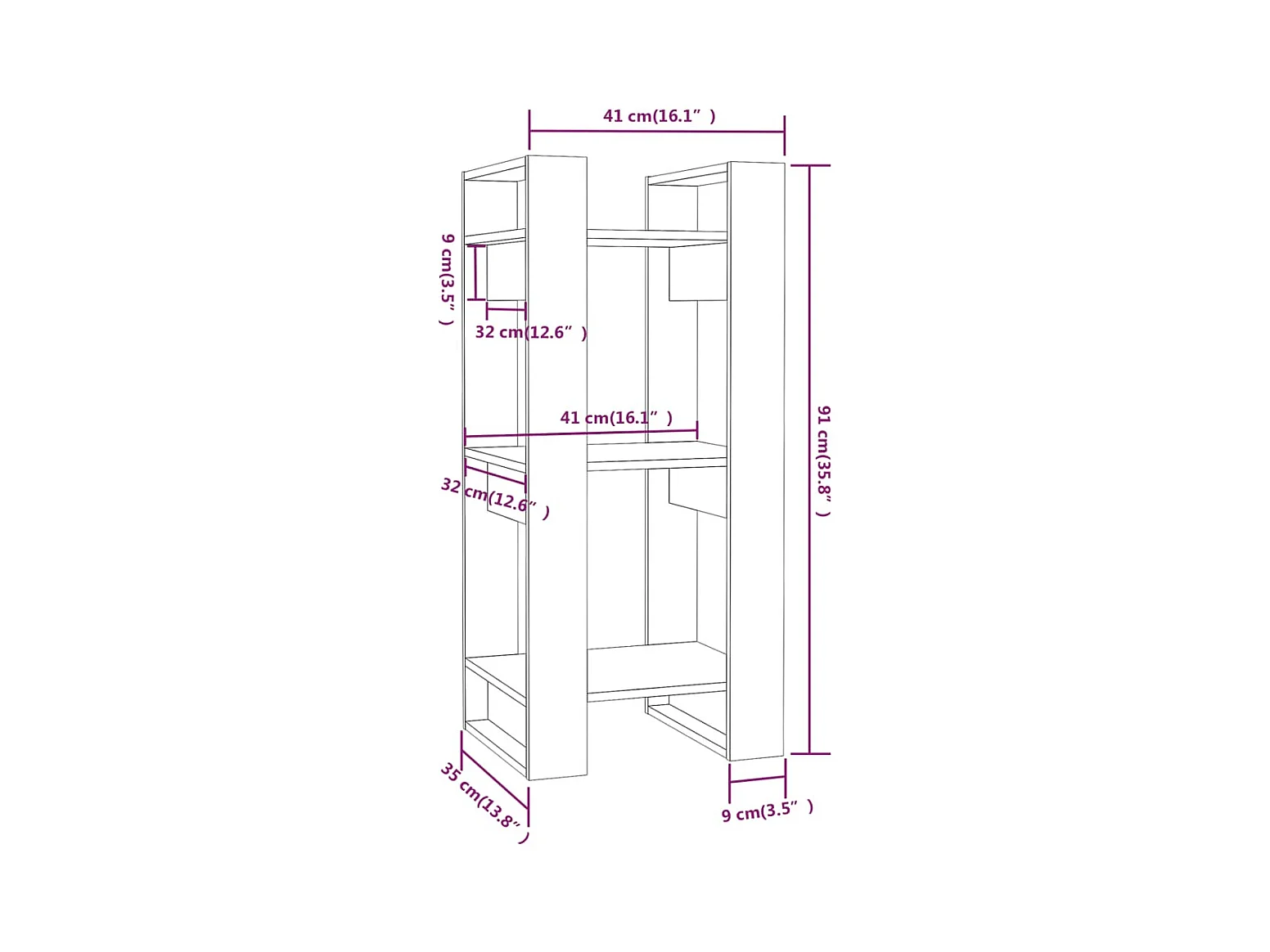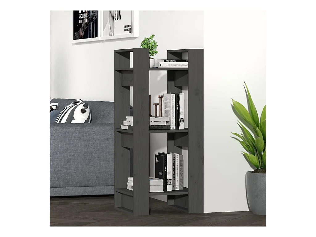 Bibliothèque/Séparateur de pièce Gris 41x35x57 cm Pin solide