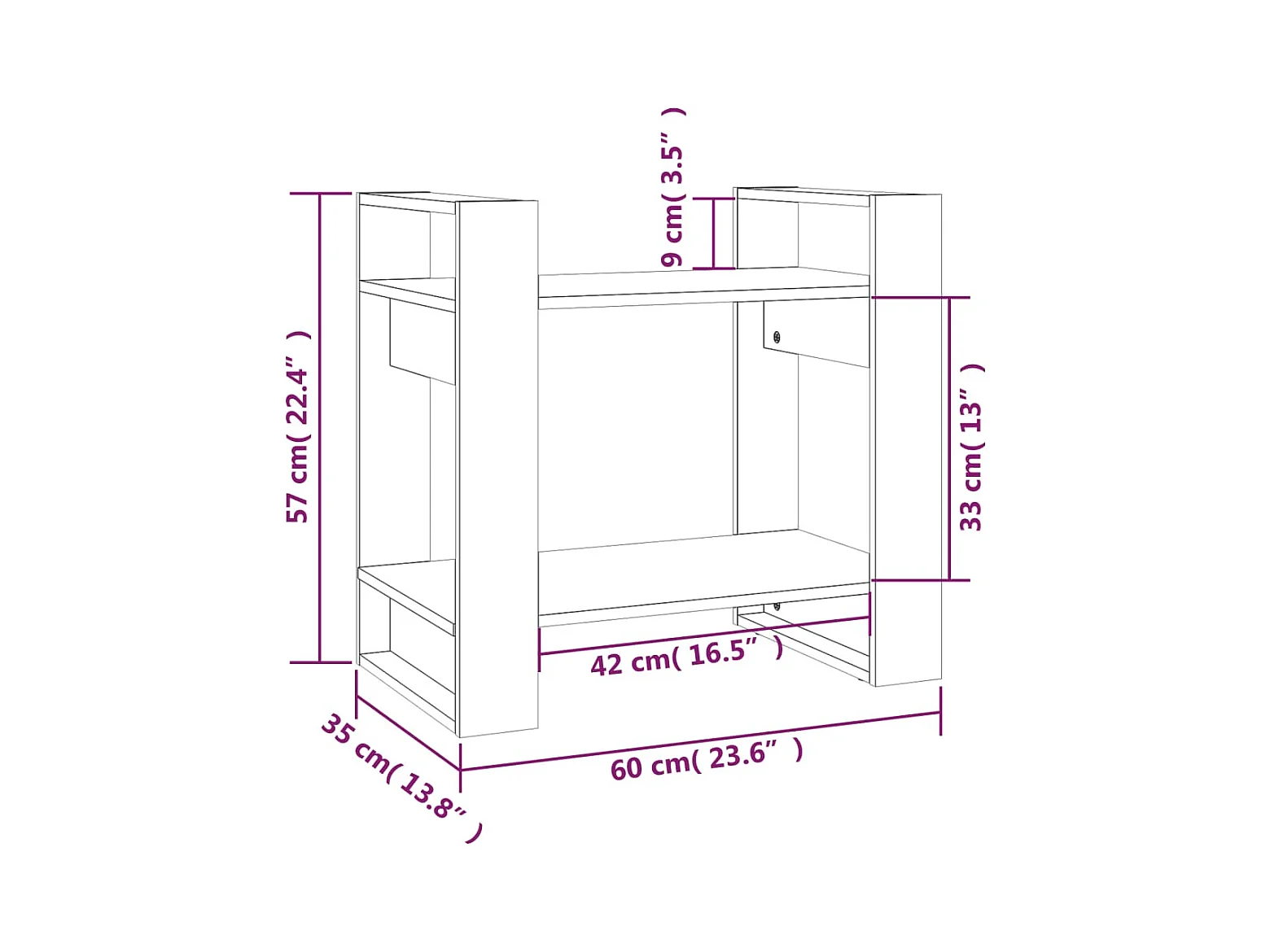 Bibliothèque/Séparateur de pièce Gris 60x35x57 cm Pin massif