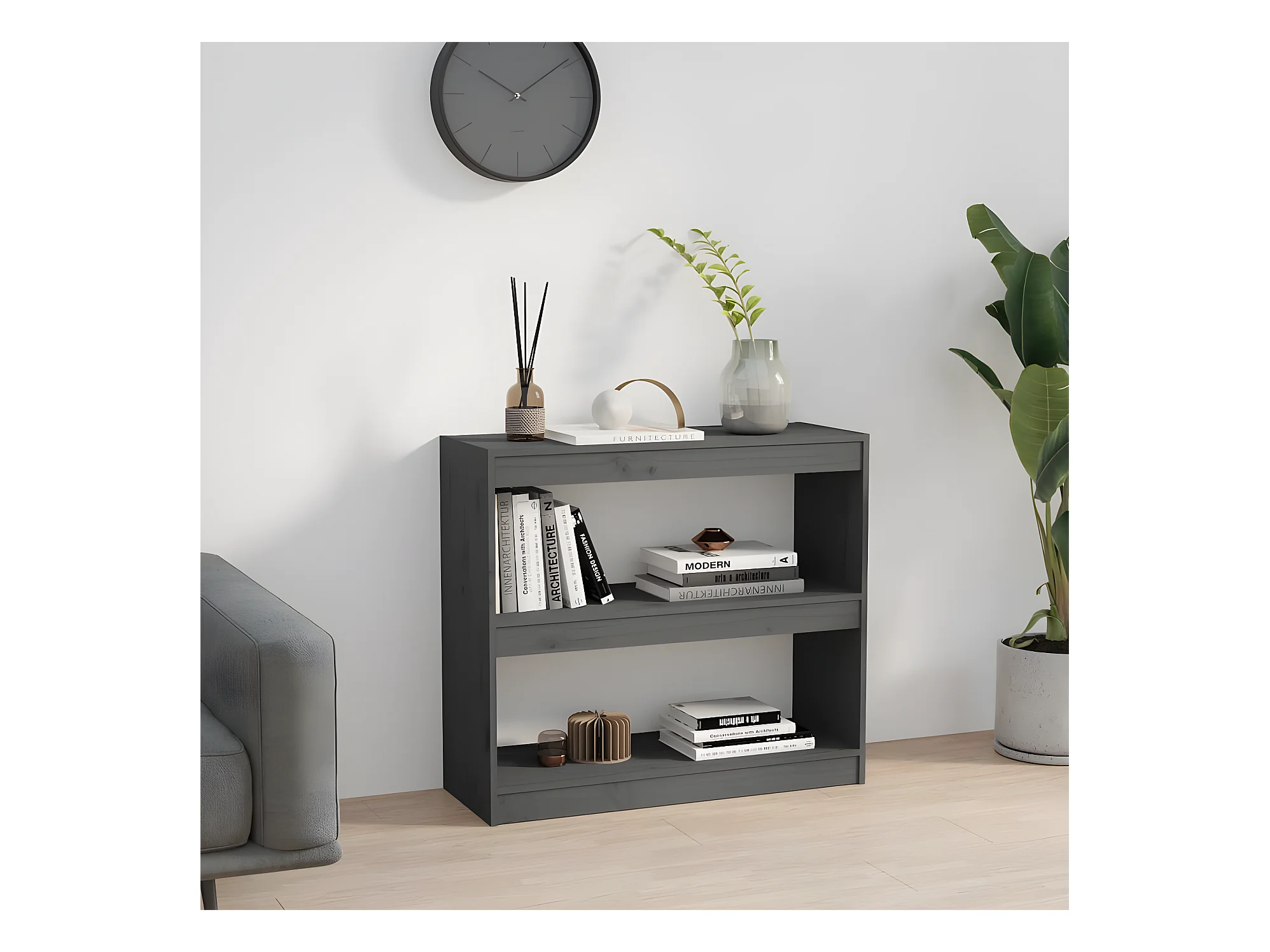 Bibliothèque/Séparateur de pièce Gris 80x35x56,5 cm Pin solide