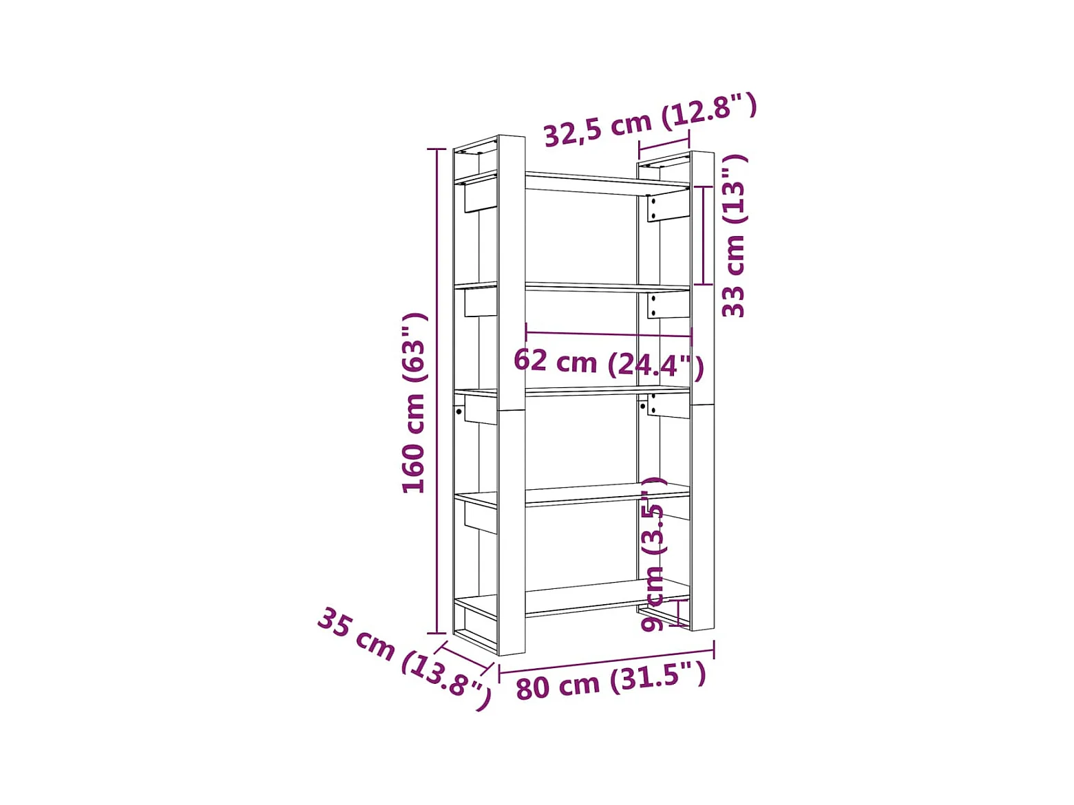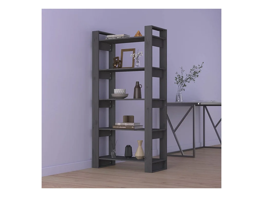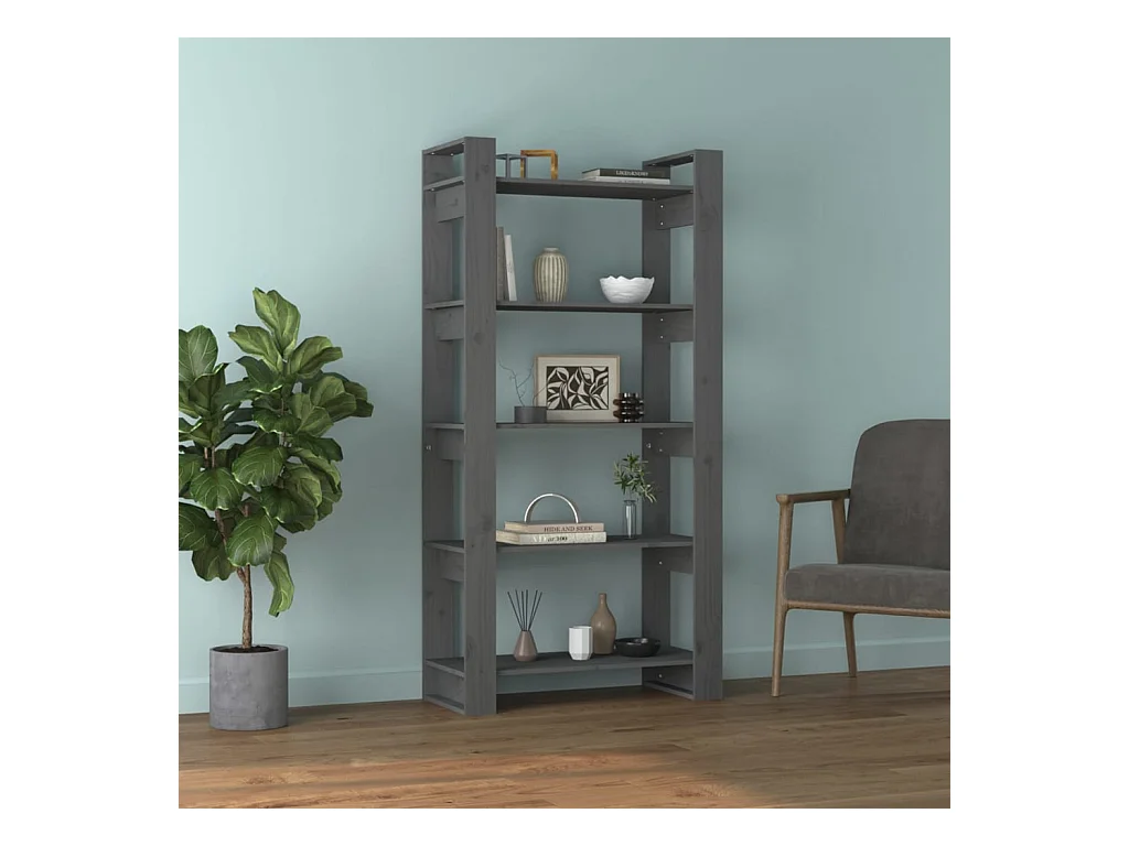 Bibliothèque/Séparateur de pièce Gris 80x35x160 cm Bois massif
