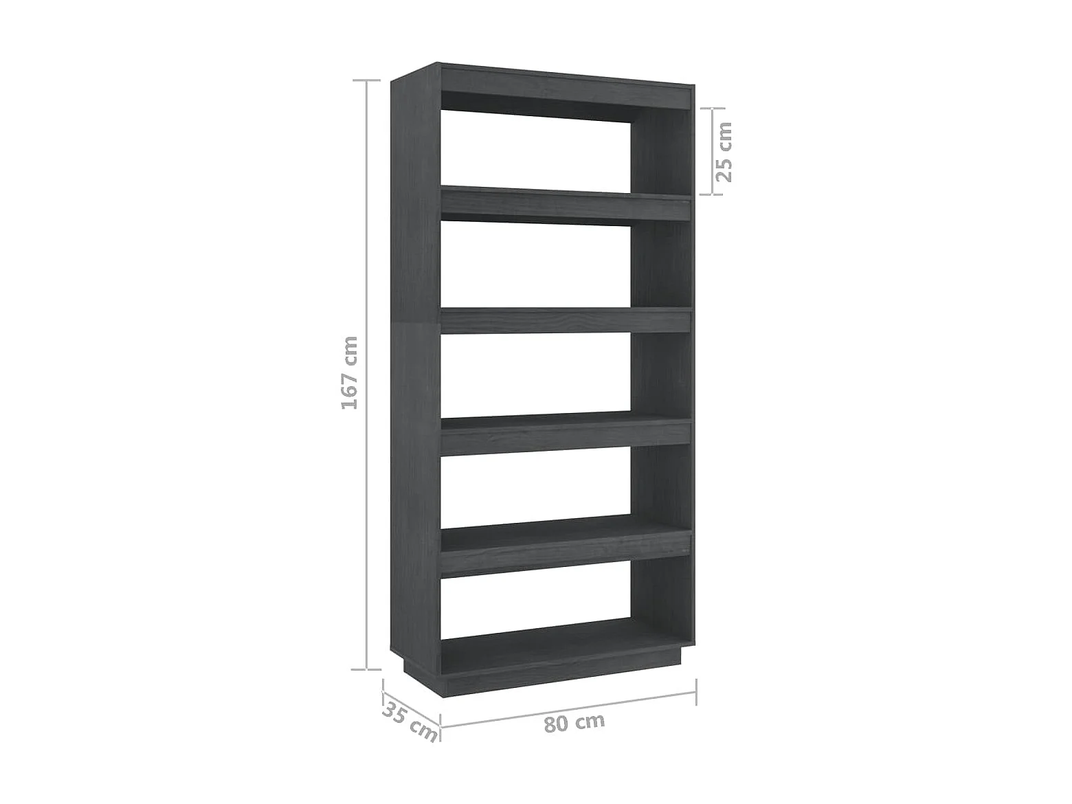 Bibliothèque/Séparateur de pièce Gris 80x35x160 cm Bois massif