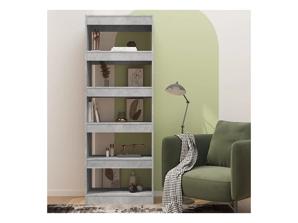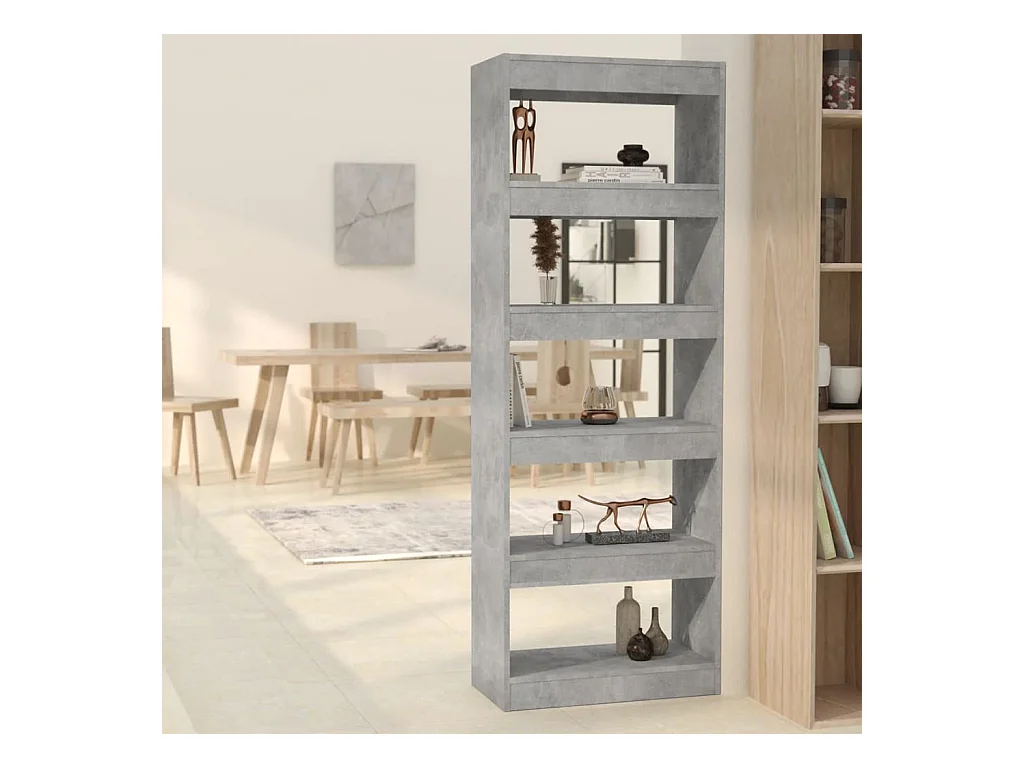 Bibliothèque/séparateur de pièce gris béton bois d'ingénierie
