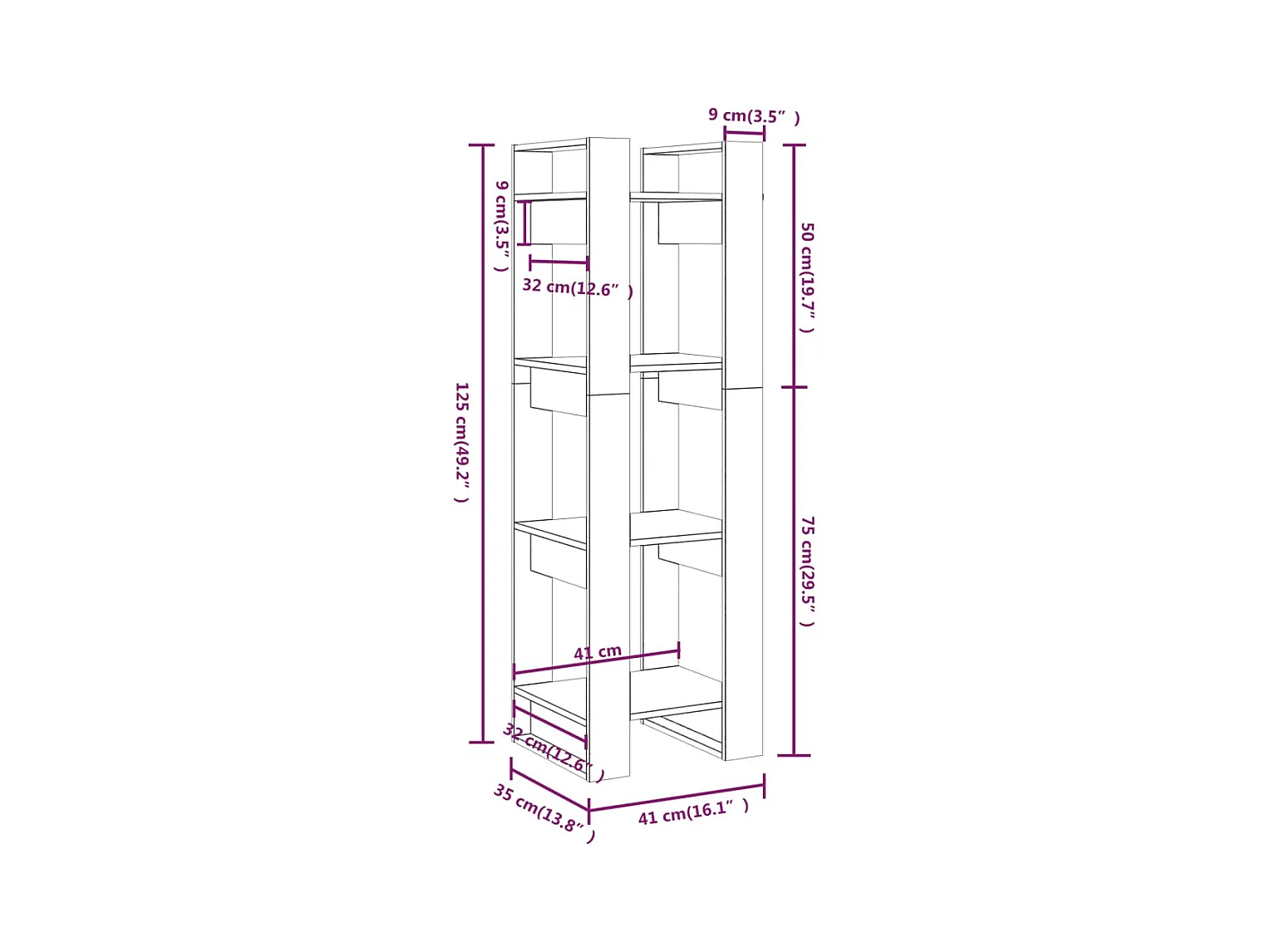 Bibliothèque-Séparateur de pièce Noir 41x35x125 cm Pin massif OFR70094 BonneVie Meuble