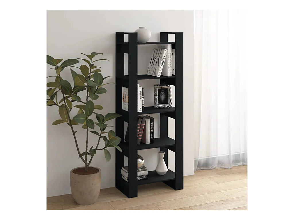 Bibliothèque/Séparateur de pièce Noir 60x35x57 cm Pin massif