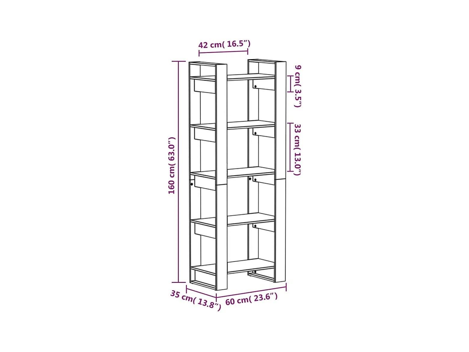 Bibliothèque/Séparateur de pièce Noir 60x35x160 cm Bois massif
