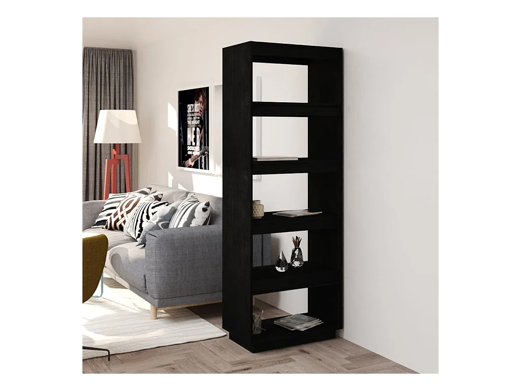 Bibliothèque/Séparateur de pièce Noir 60x35x167 cm Pin massif