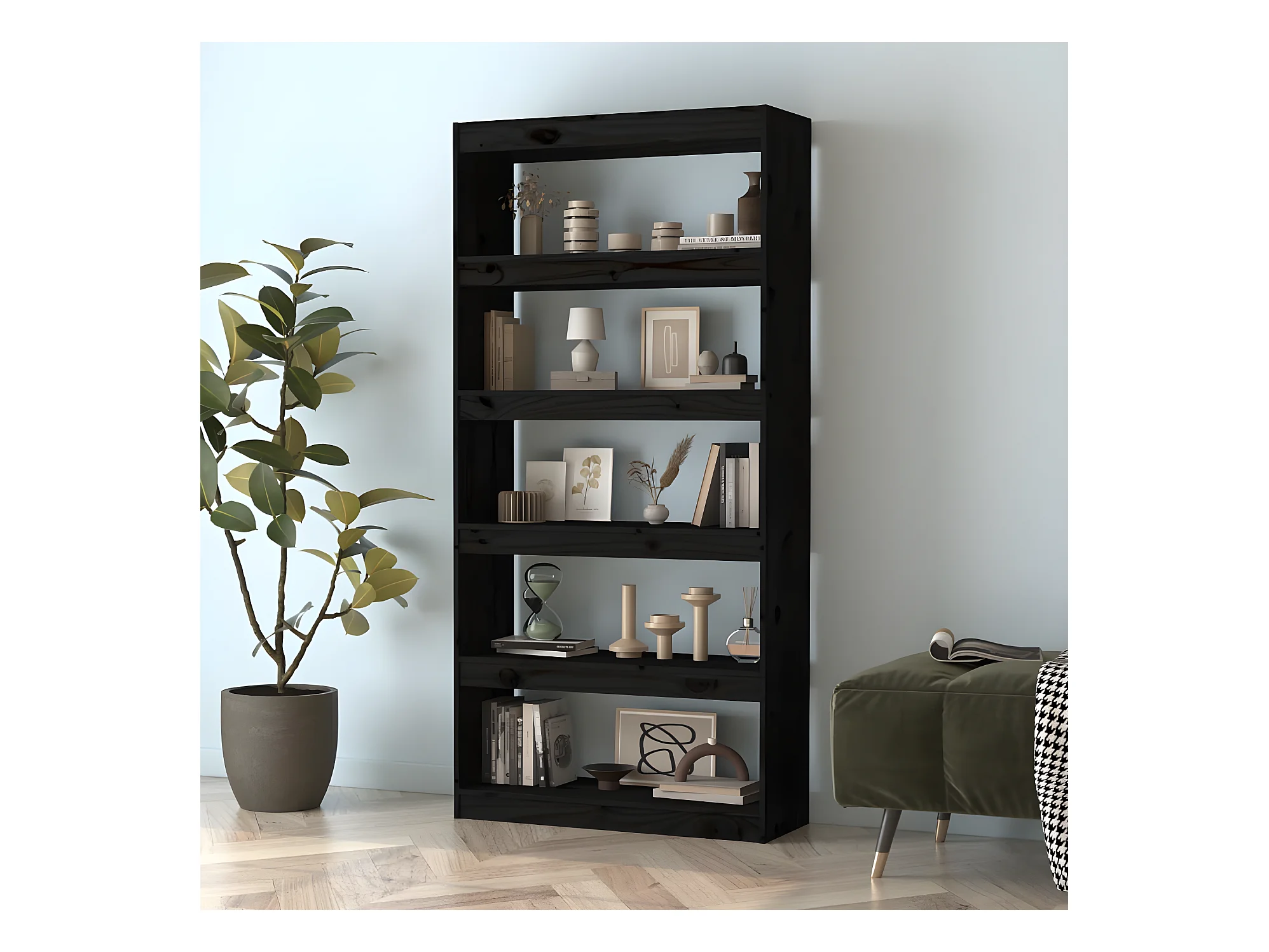 Bibliothèque-Séparateur de pièce Noir 80x30x103,5 cm Pin solide OFR67811 BonneVie Meuble