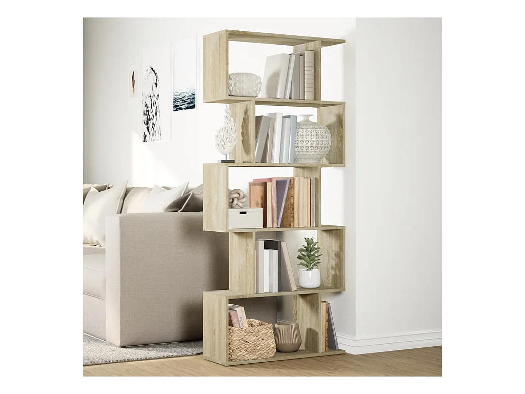 Bibliothèque séparatrice de pièce 5 niveaux chêne sonoma 70x24x161cm
