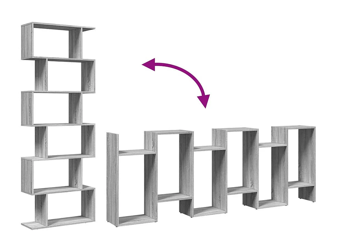 Bibliothèque séparatrice de pièce 6 niveaux sonoma gris 70x24x193 cm