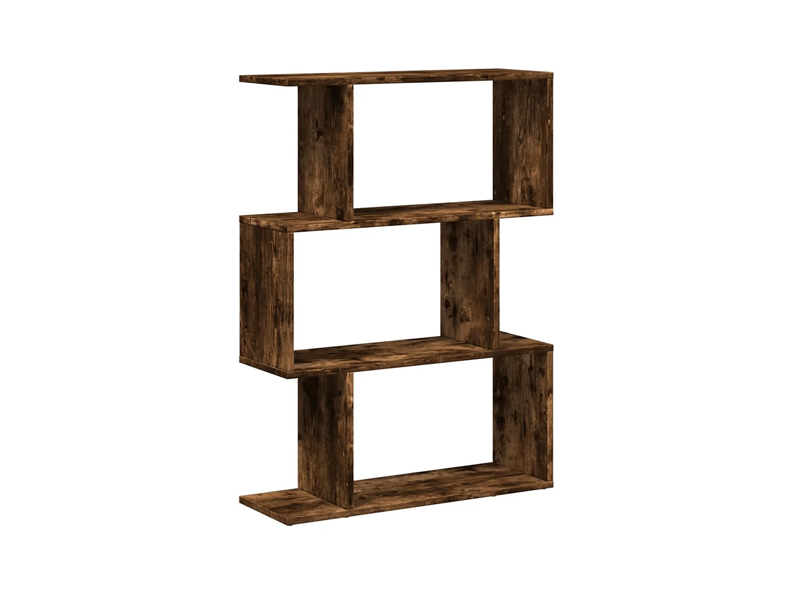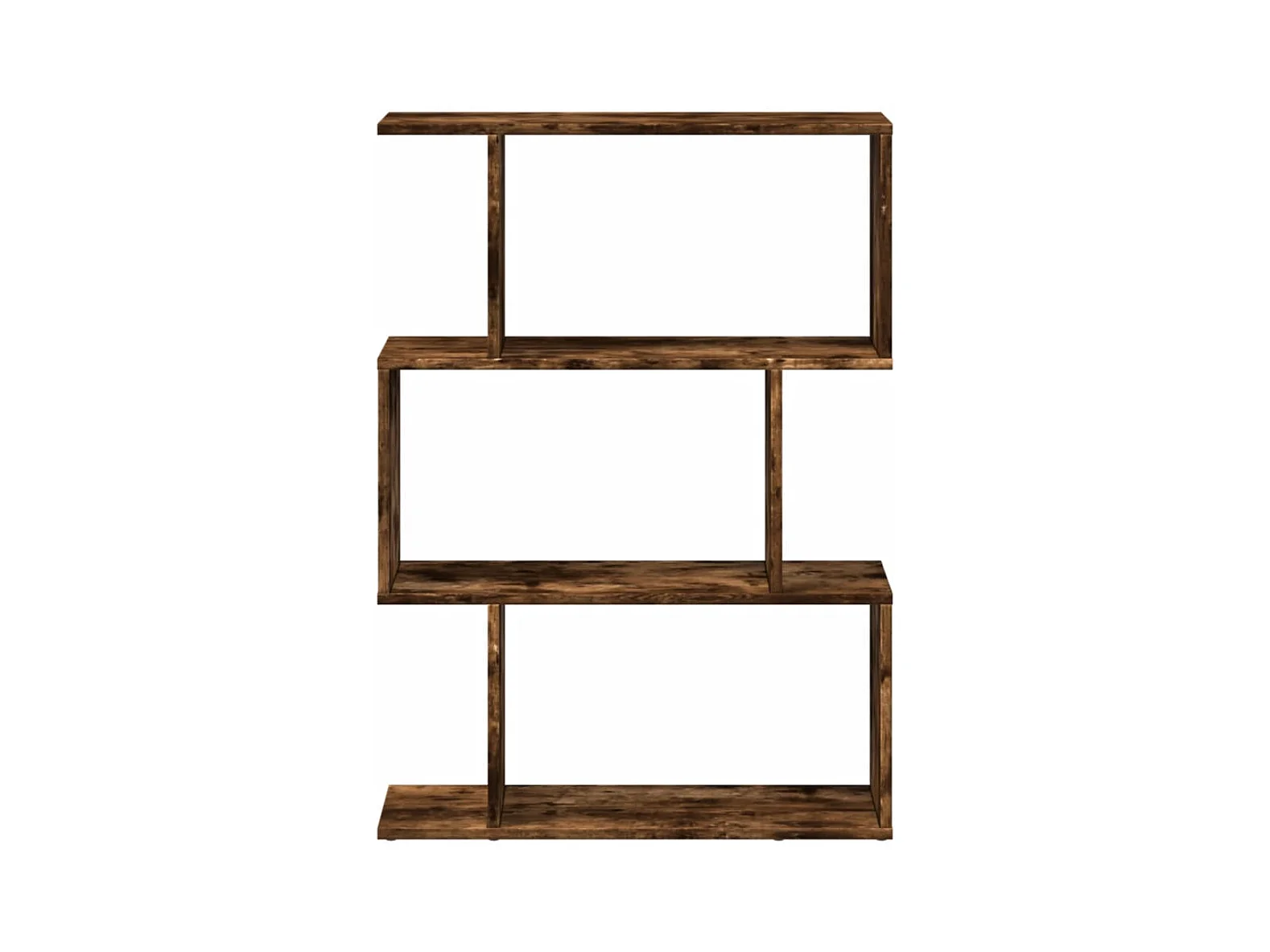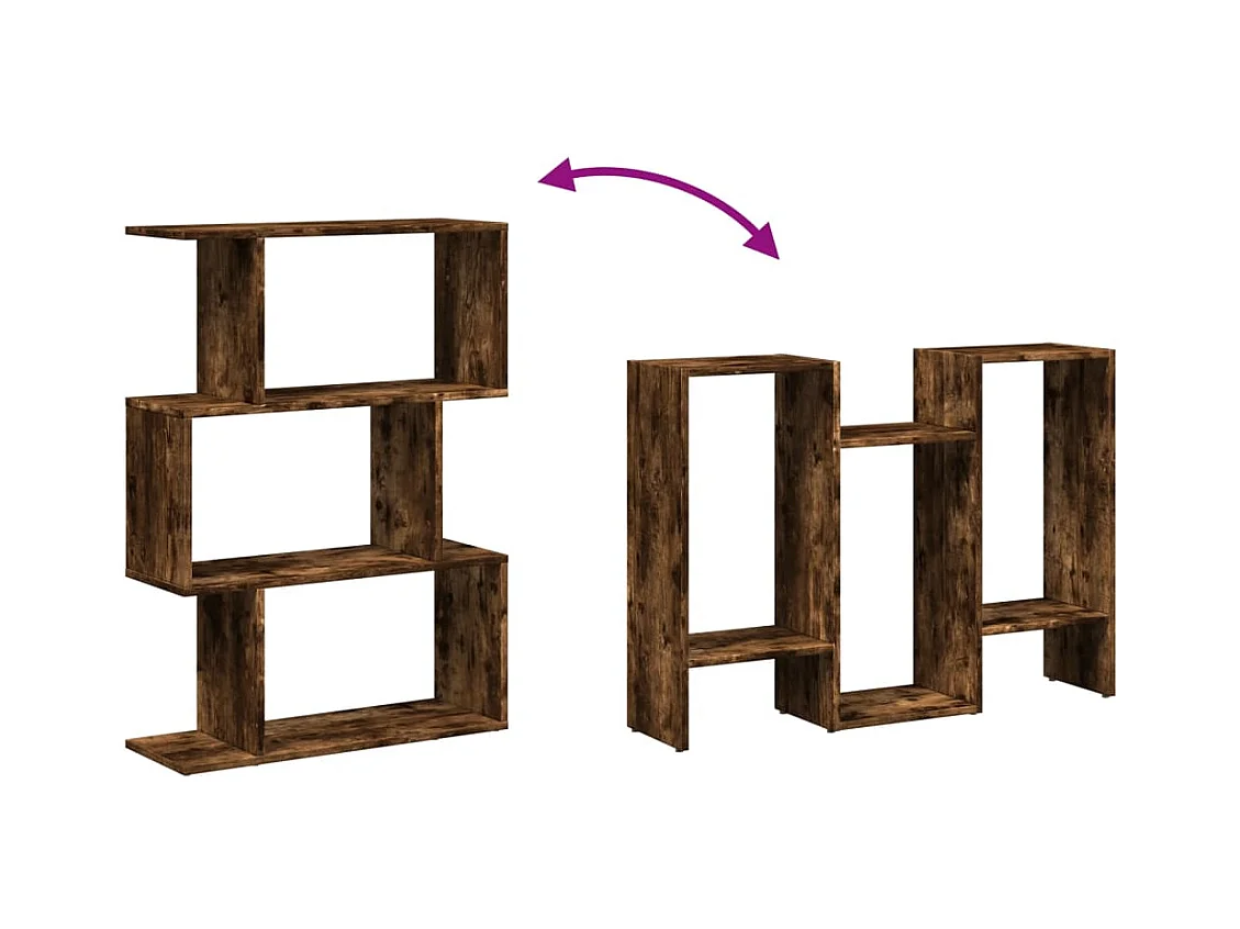 Bibliothèque séparatrice de pièce à 4 niveaux chêne fumé 70x24x129cm