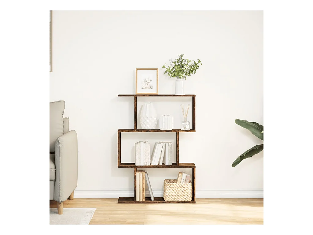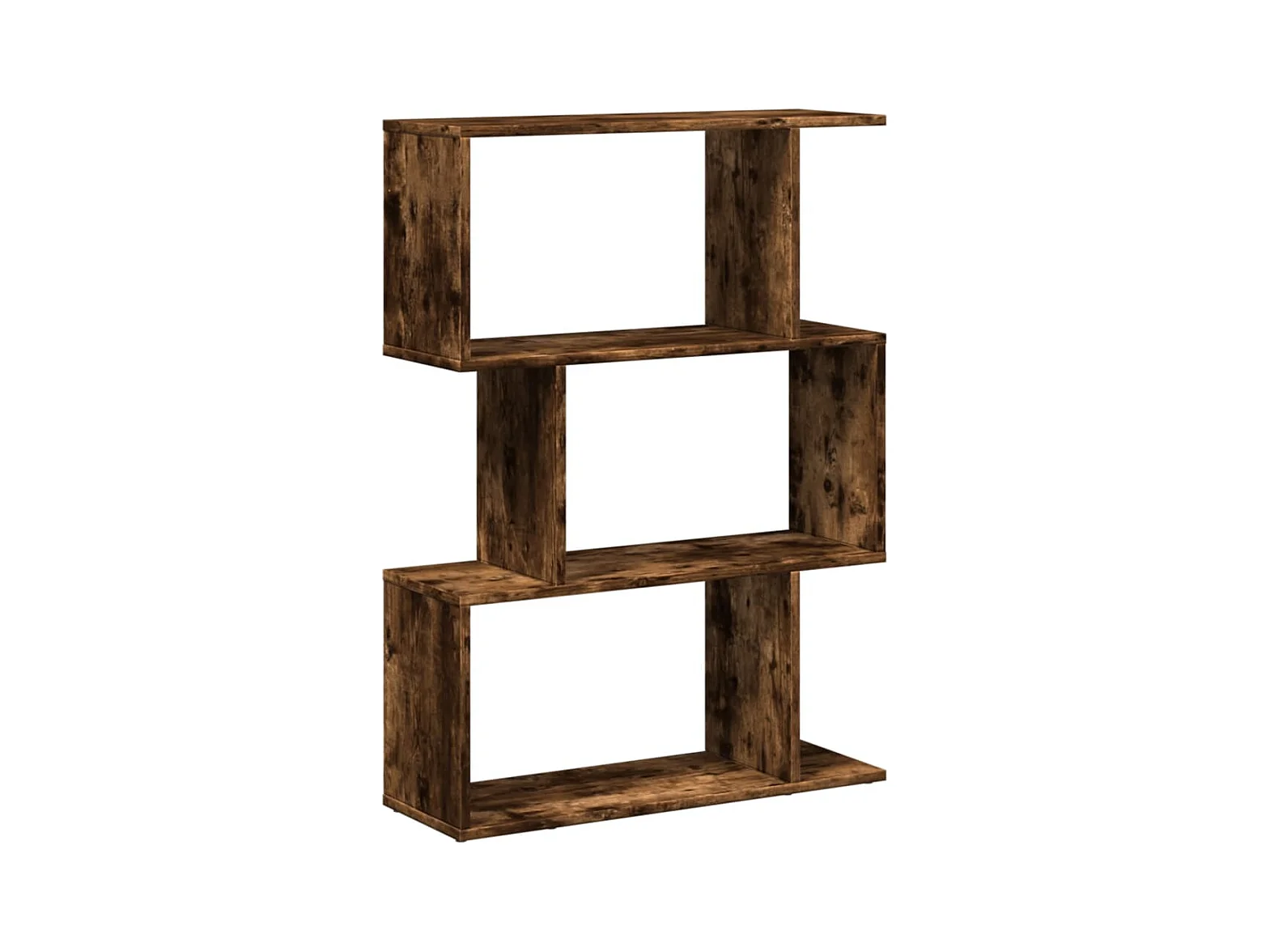 Bibliothèque séparatrice de pièce à 3 niveaux chêne fumé 70x24x97 cm