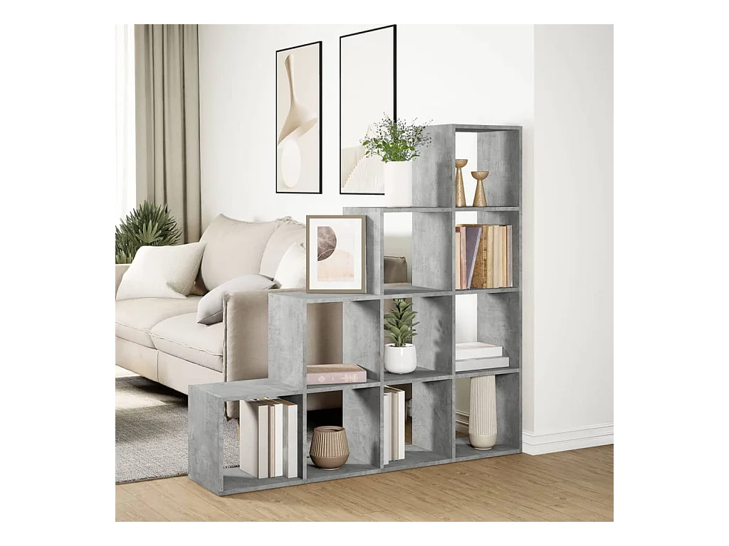 Bibliothèque séparatrice de pièce à 4 niveaux gris béton
