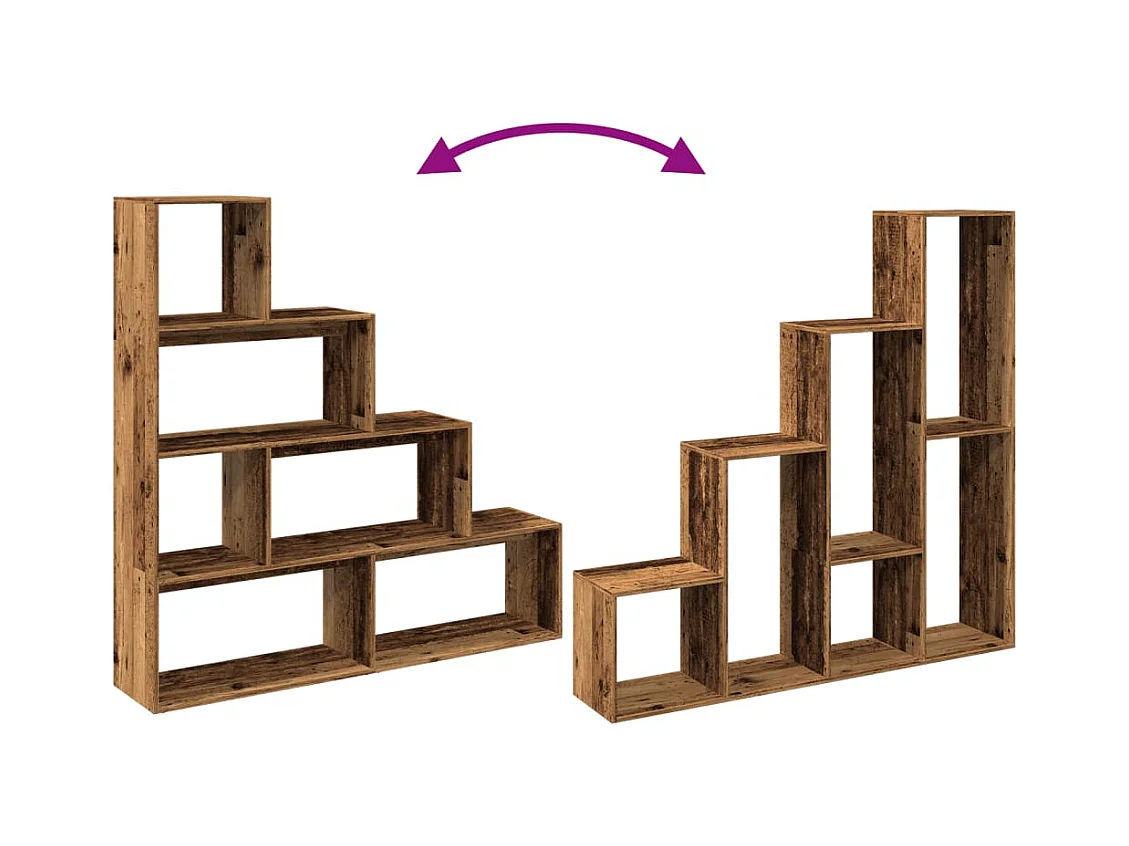 Bibliothèque séparatrice de pièce à 4 niveaux vieux bois