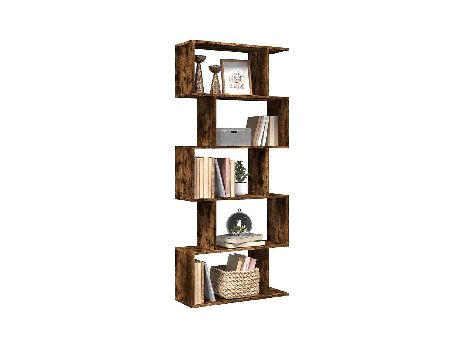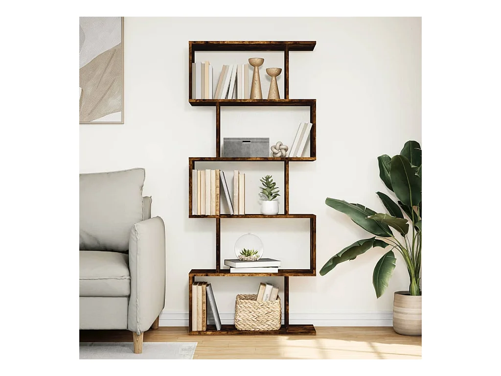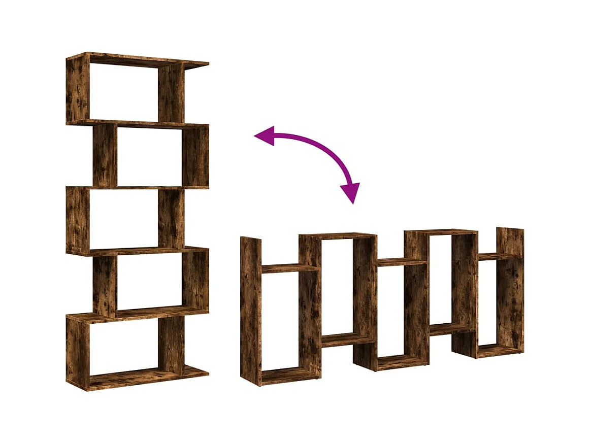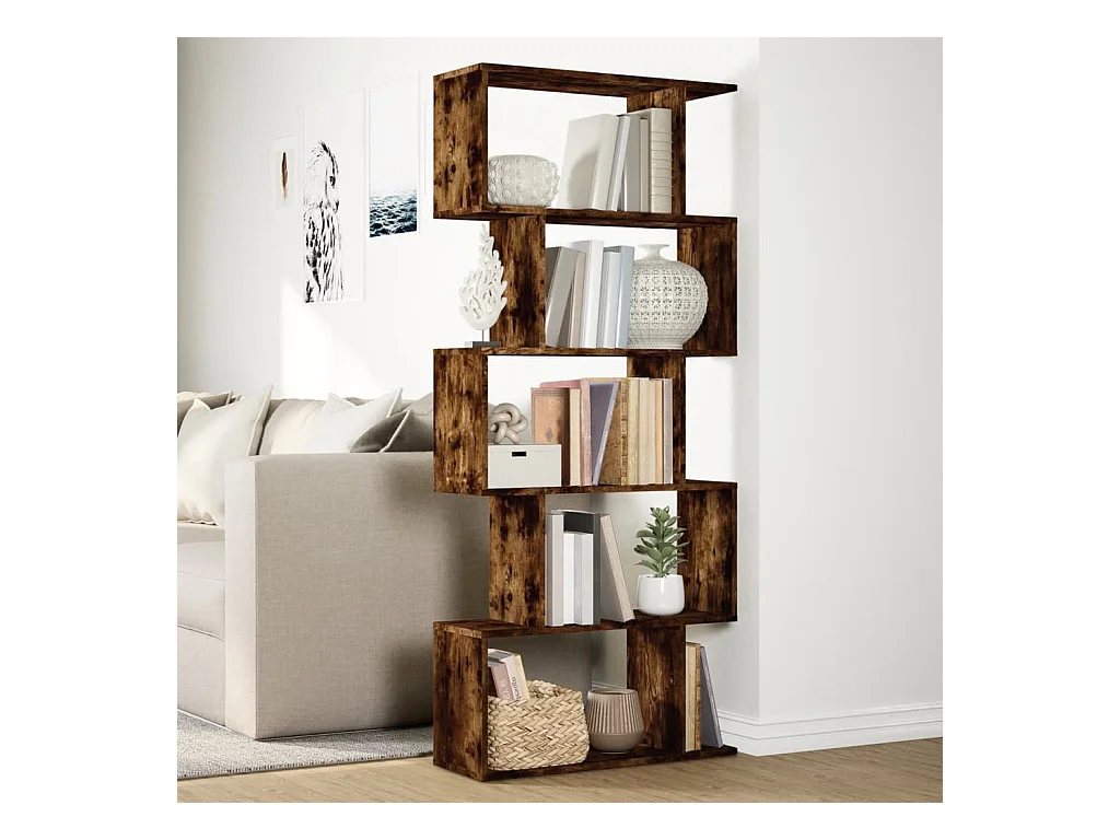 Bibliothèque séparatrice de pièce à 5 niveaux chêne fumé 70x24x161cm
