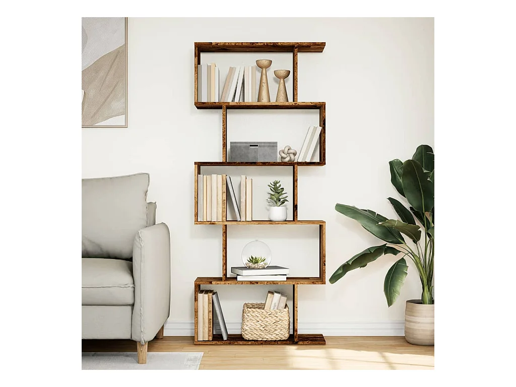 Bibliothèque séparatrice de pièce à 5 niveaux chêne fumé 70x24x161cm