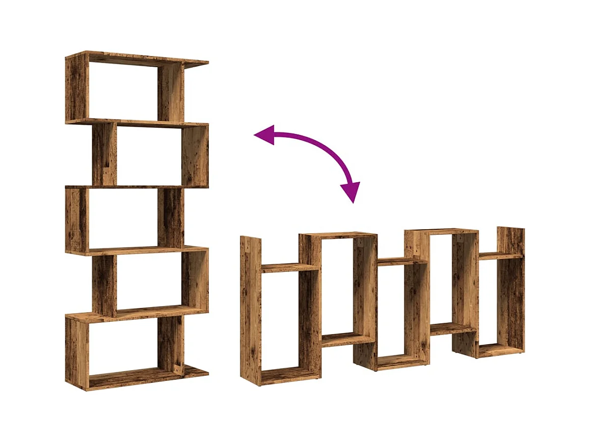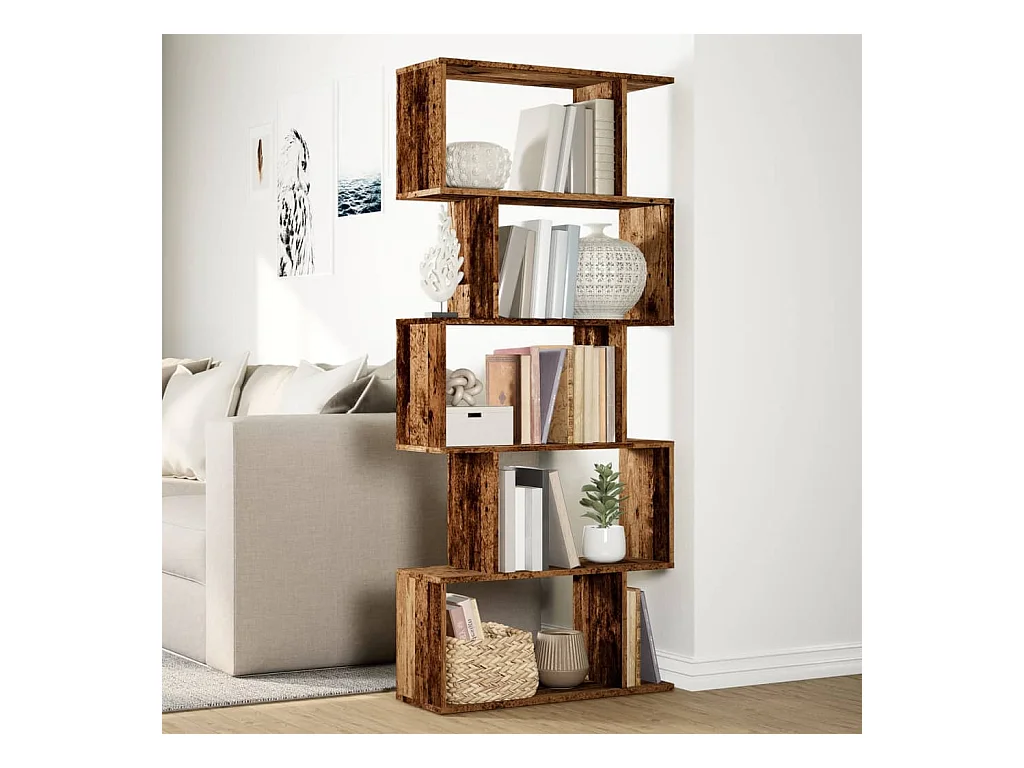 Bibliothèque séparatrice de pièce à 5 niveaux vieux bois 70x24x161cm