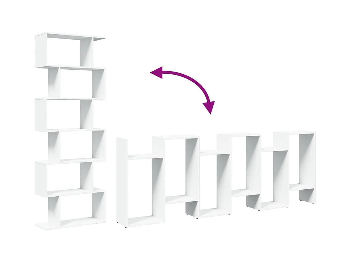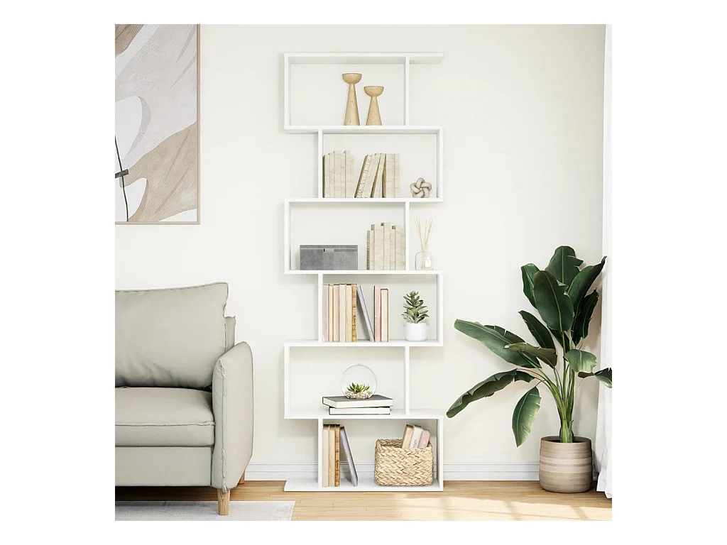 Bibliothèque séparatrice de pièce à 6 niveaux blanc 70x24x193 cm