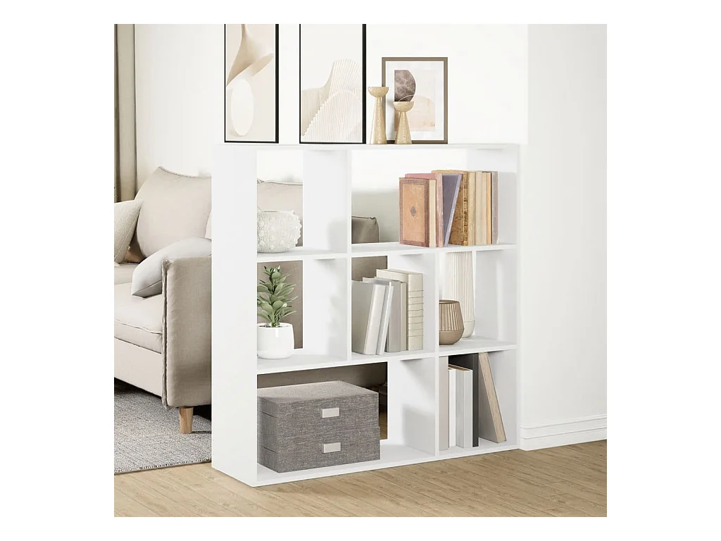 Bibliothèque séparatrice de pièce à 3 niveaux blanc 123x29x123 cm
