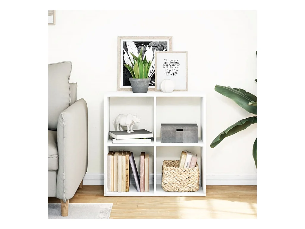 Bibliothèque séparatrice de pièce à 4 niveaux blanc 131,5x29x131,5cm