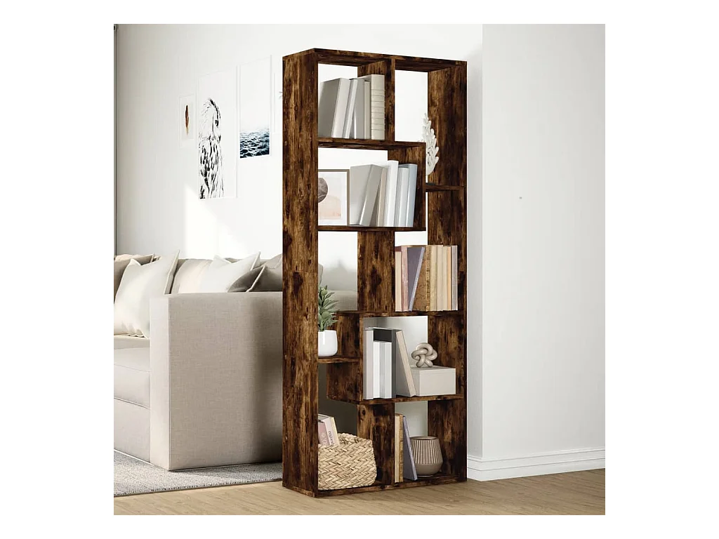 Bibliothèque séparatrice de pièce chêne fumé 67x25x161,5 cm