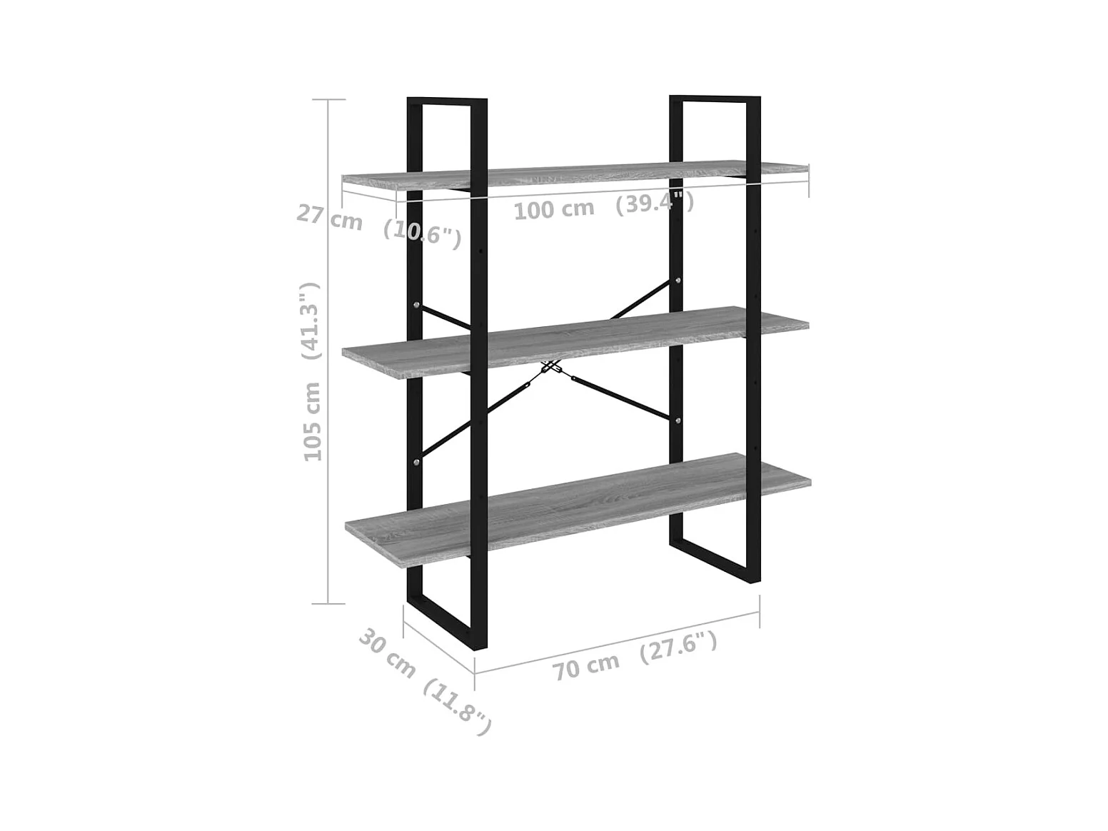 Bibliothèque gris 100x30x105 cm bois d’ingénierie