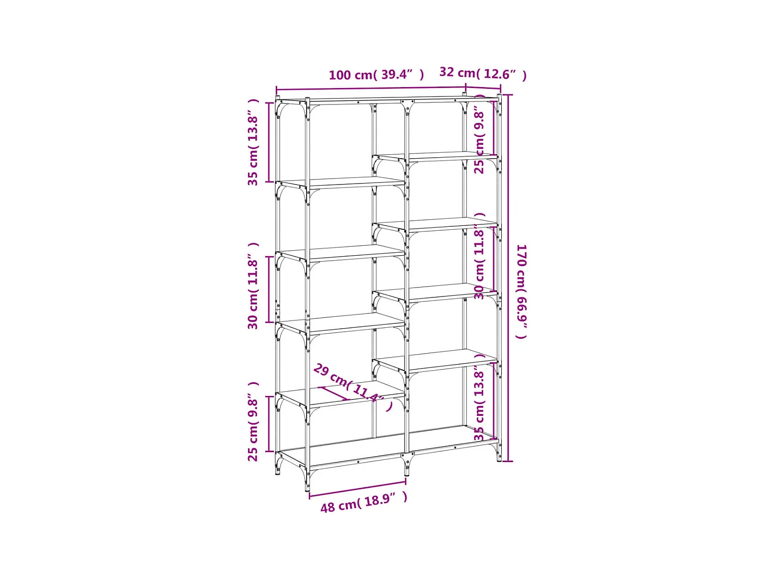Bibliothèque sonoma gris 100x32x170 cm bois d'ingénierie et fer