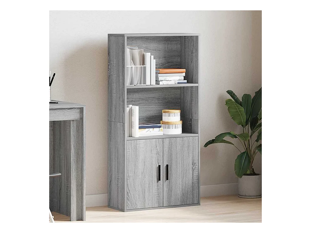 Bibliothèque à 3 niveaux gris béton 60x30x120cm bois ingénierie