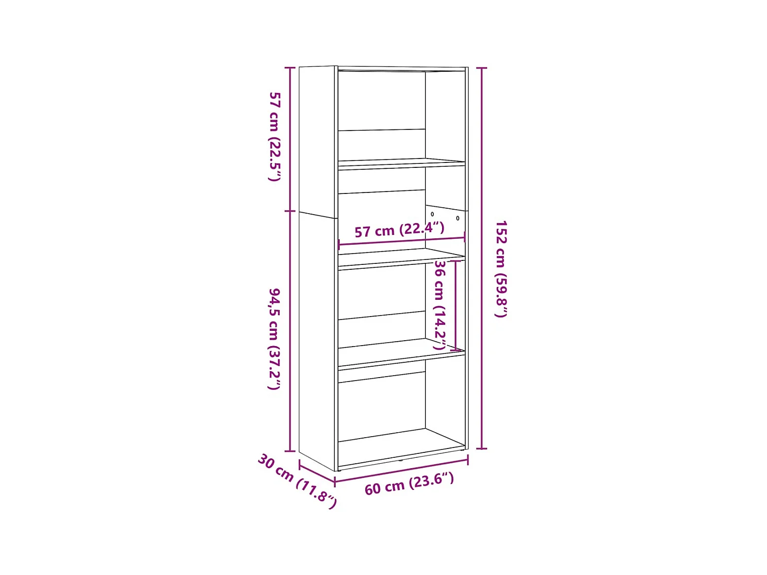 Bibliothèque sonoma gris 60x30x152 cm bois d'ingénierie