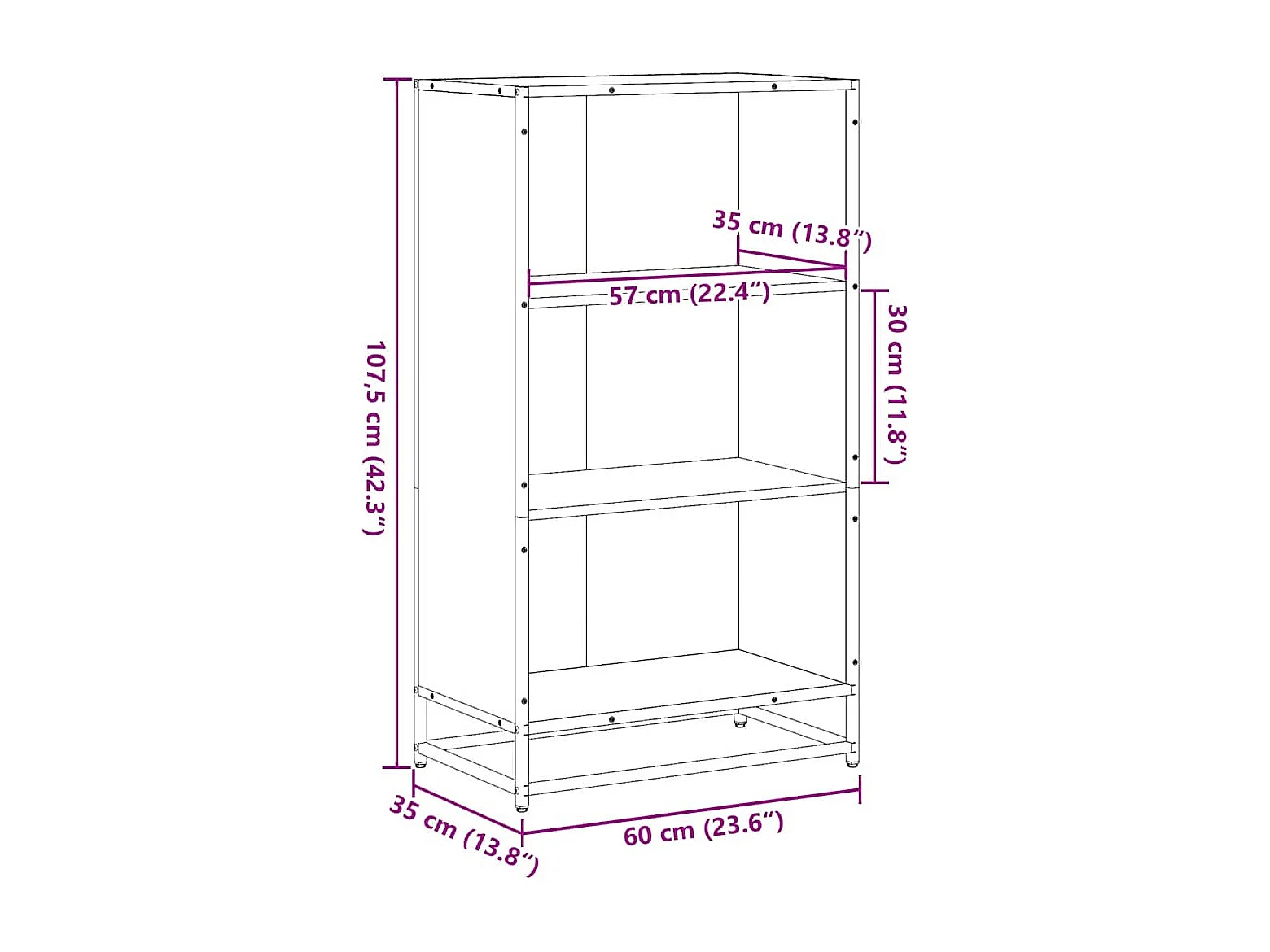 Bibliothèque sonoma gris 60x35x107,5 cm bois d'ingénierie
