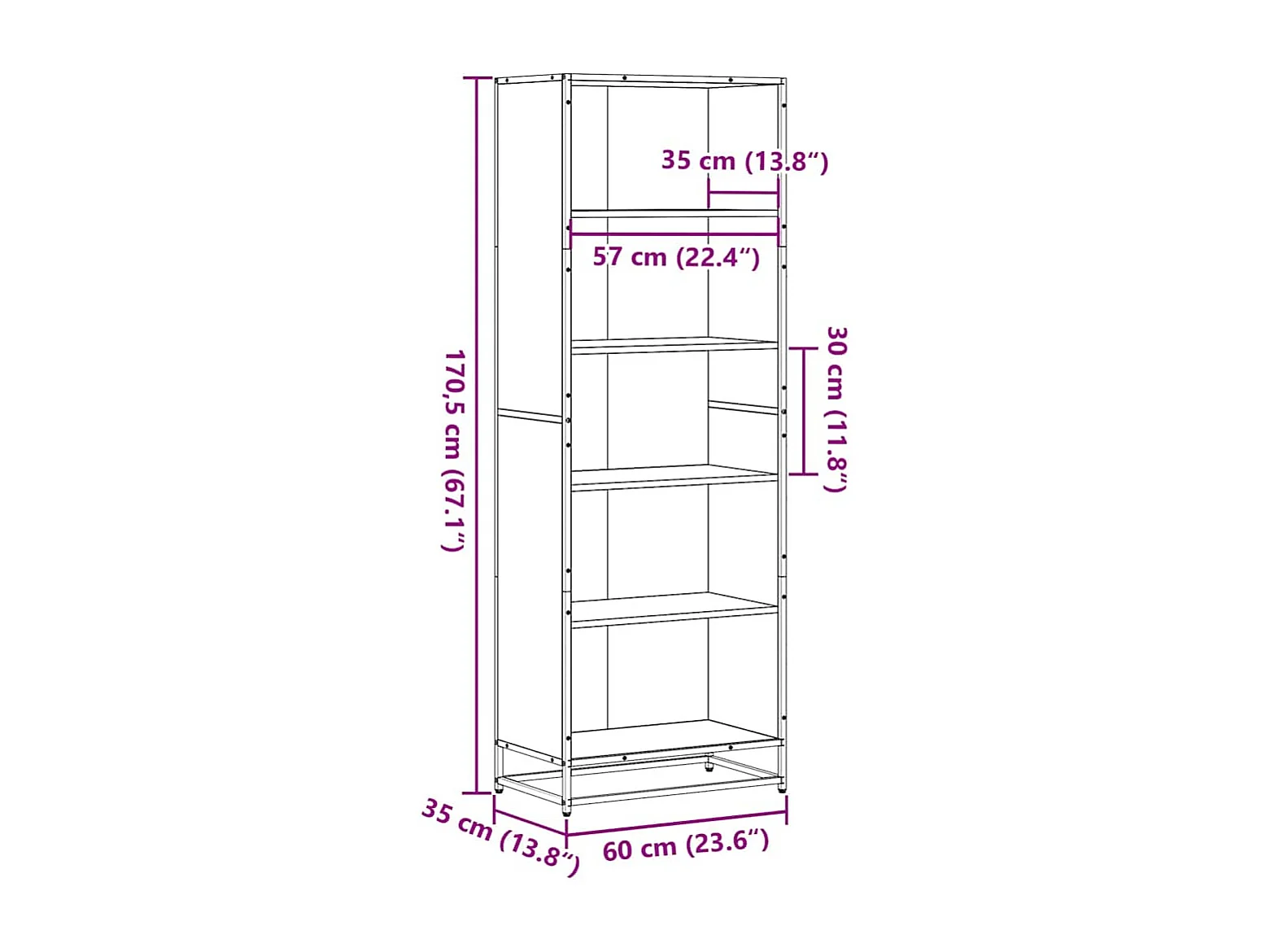 Bibliothèque sonoma gris 60x35x170,5 cm bois d'ingénierie